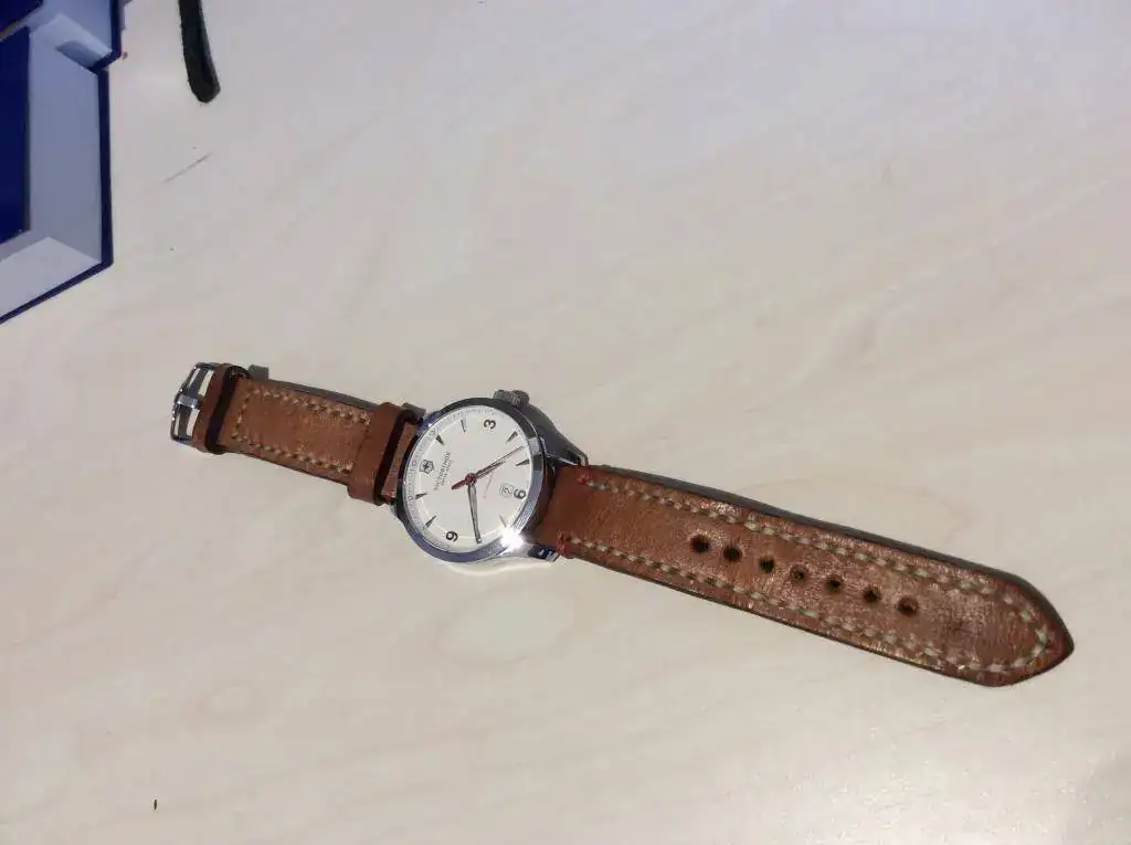 Ahi van fotos...No es el Victorinox que yo compraria. Me gustaria verlo con esa corra de piel. Saludos