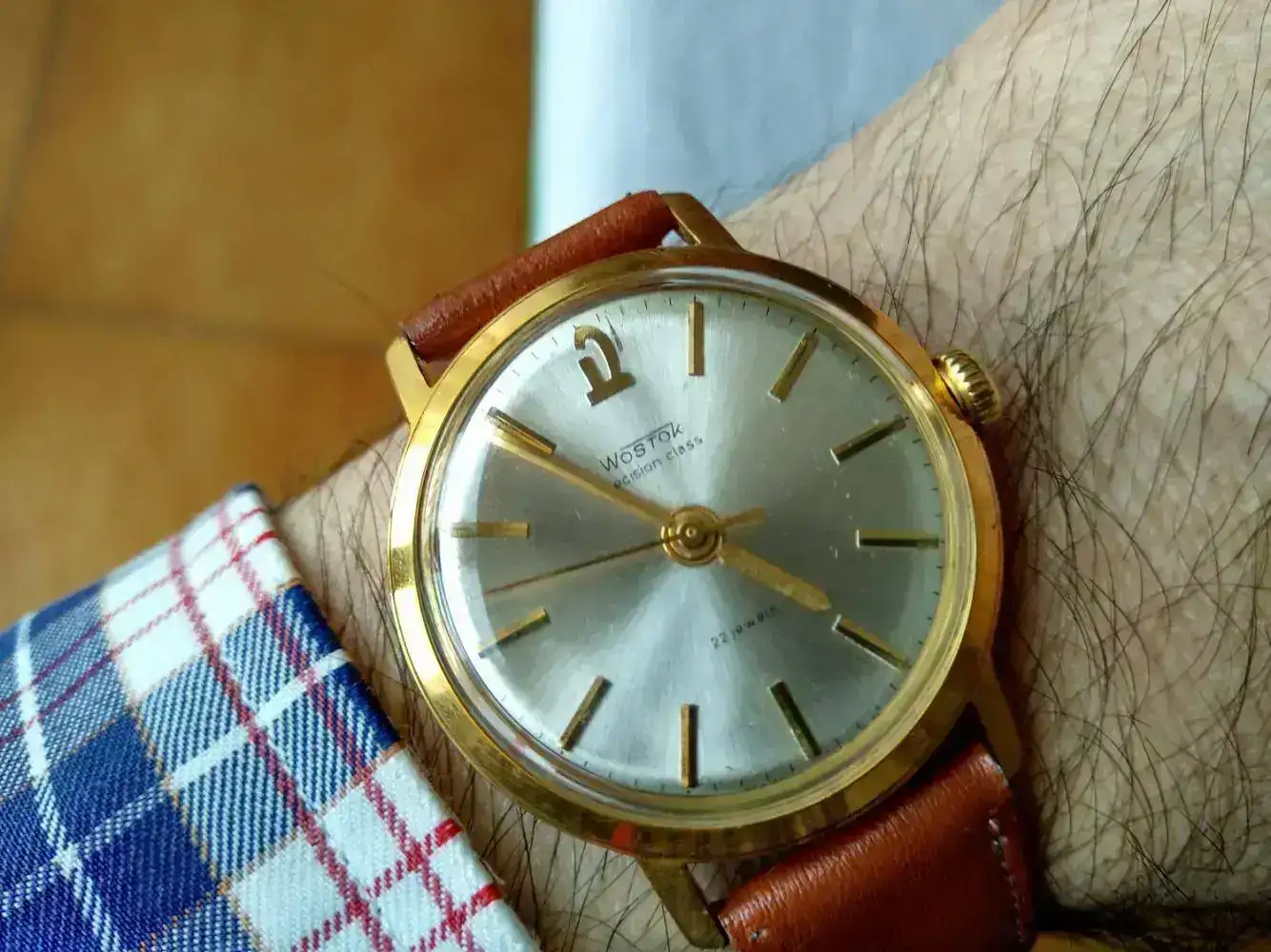 Pues aquí está el mío. Precisión también de 3ª generación con la inscripción 2809 en el calibre y en la tapa. La caja de color dorado-feo y una esfera rara pero en buen estado. Hecho para el mercado internacional (en inglés). Supongo que todo él es original. Adquirido en Estonia.