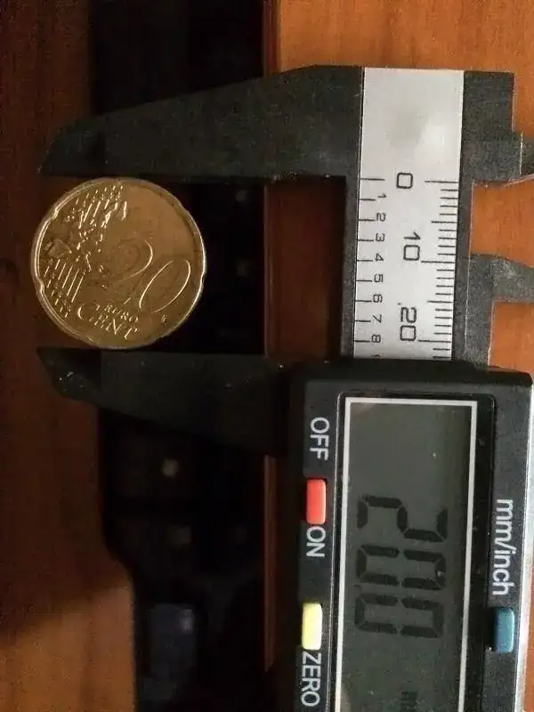 cierto ;-), he comparado lo que mide una moneda de 20 ctm de € (22.5 mm), y este es el resultado de la regla chorridigital vs analogica :pardon:
