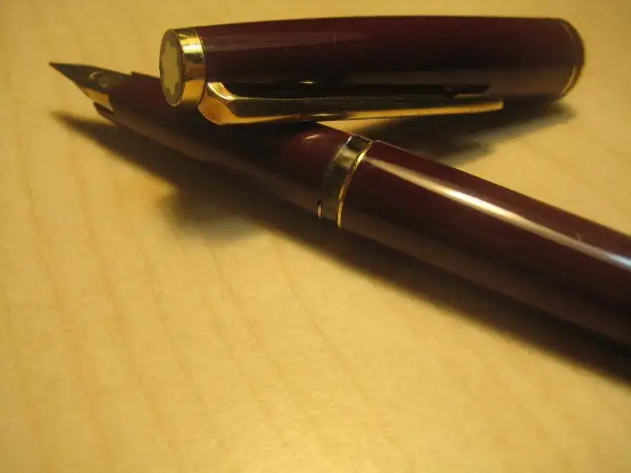 Se trata de una Montblanc Classic de los años 90, en color burdeos con plumín de acero dorado. Es especial y como un amuleto para mí, pues con ella hice todos los exámenes desde 2º de Bachiller hasta que acabé los estudios.
