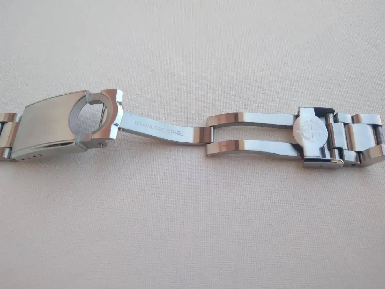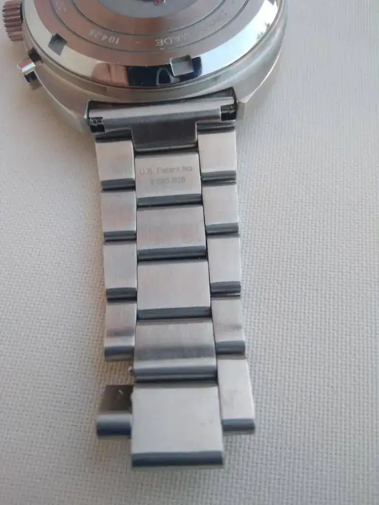 Quiero también hacer mención al brazalete. Un brazalete de 20 mm de buena calidad. Eslabones macizos y end link recto. Dispone de un sistema patentado, patente grabada en el interior del armis, para el cambio de eslabones sin herramientas. Haciendo un movimiento con los dedos se abre y puedes retirar o añadir los eslabones en segundos. Me da confianza el sistema, pero intentaré no usarlo mucho no vaya a ser que cojan juego.