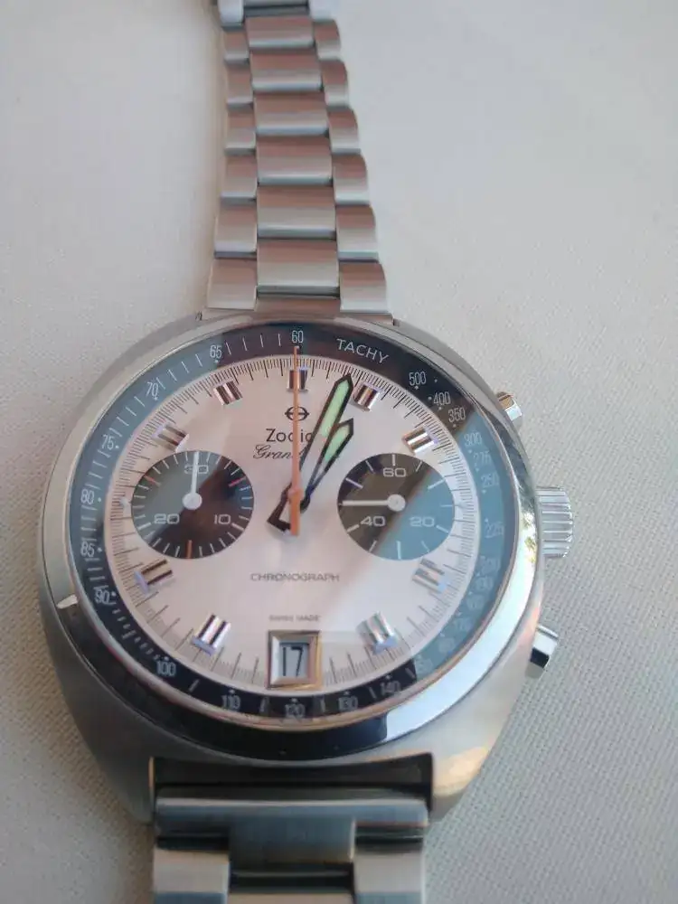 El cierre con 4 posiciones de micro ajuste con el logo de Zodiac es también aparente. No es un brazalete de gran calidad, pero sí de buena calidad.
