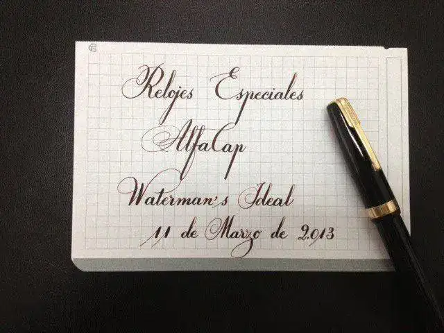 Hola, buenos días. Ante todo permitidme presentarme. Soy nuevo y, aparte de aficionado a los relojes, lo soy también a las estilográficas, sobre todo a las yayas. Aquí os dejo mi carta de presentación escrita ahora mismo con la niña de mis ojos, la más antigua que tengo, mi Waterman´s Ideal.