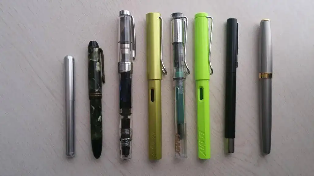 Mi economía no es de las que dan para tener plumas de lujo, pero supongo que eso se irá solucionando con el tiempo. Por lo pronto, tengo algunas Kaweco, algunas Lamy, un par de Parker y una Twsbi, además de unas cuantas inoxcrom que no estaban a mano para hacer fotos, tanto compradas como de propaganda.