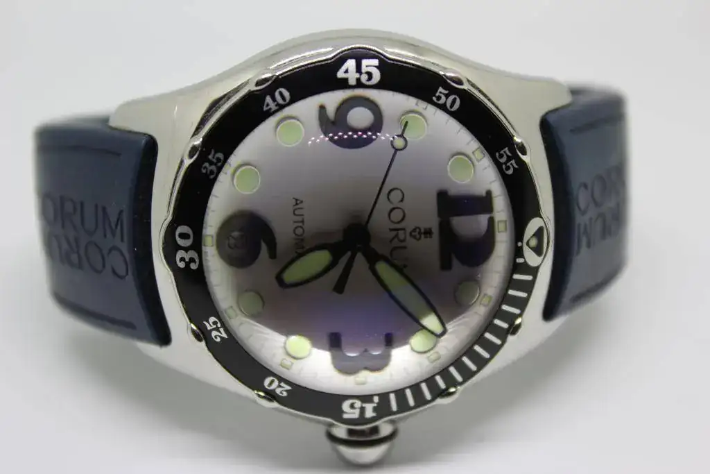 Ahora, el Corum bubble es un 82.120.20 en version de caucho azul con dial blanco, 45 mm, tiene una ETA 2892-A2 bicel unidireccional con corona enroscable y un lumen hermoso. Ya explicaba en otro hilo donde presentaba otro corum, que me es muy dificil encontrar estas piezas en buenas condiciones que no tengan precios exorbitantes. Muy contento con mis 2 nuevas adquisiciones, ya habra varios que notaran mi adiccion al Bubble, no la puedo parar jejeje, ni hablar. Gracias por pasar por aqui, un abrazo.