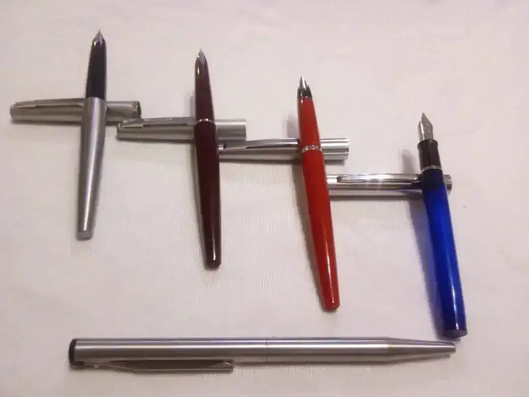 Hola "amigos" del foro,hace un año comence con este pasatiempo-aficion del mundo de las estilograficas,todo empezo por el anhelo de recuperar una pluma extraviada en el año 1985 regalo de mi madre cuando termine la escuela primaria,y aqui me encuentro con esta fiebre plumeril que no sede,jeje.por ahora mi coleccion es modesta pero ea creciendo...acepto opiniones y sugerencias ya que tengo varias dudas,aqui van algunas de mis plumas y boligrafos gracias y saludos......