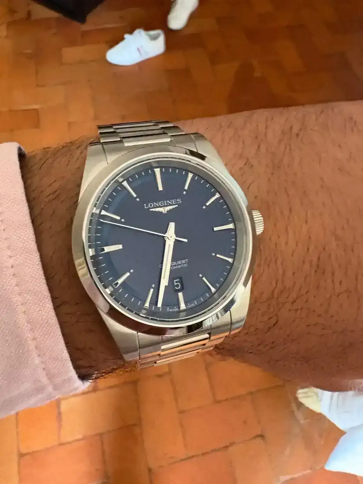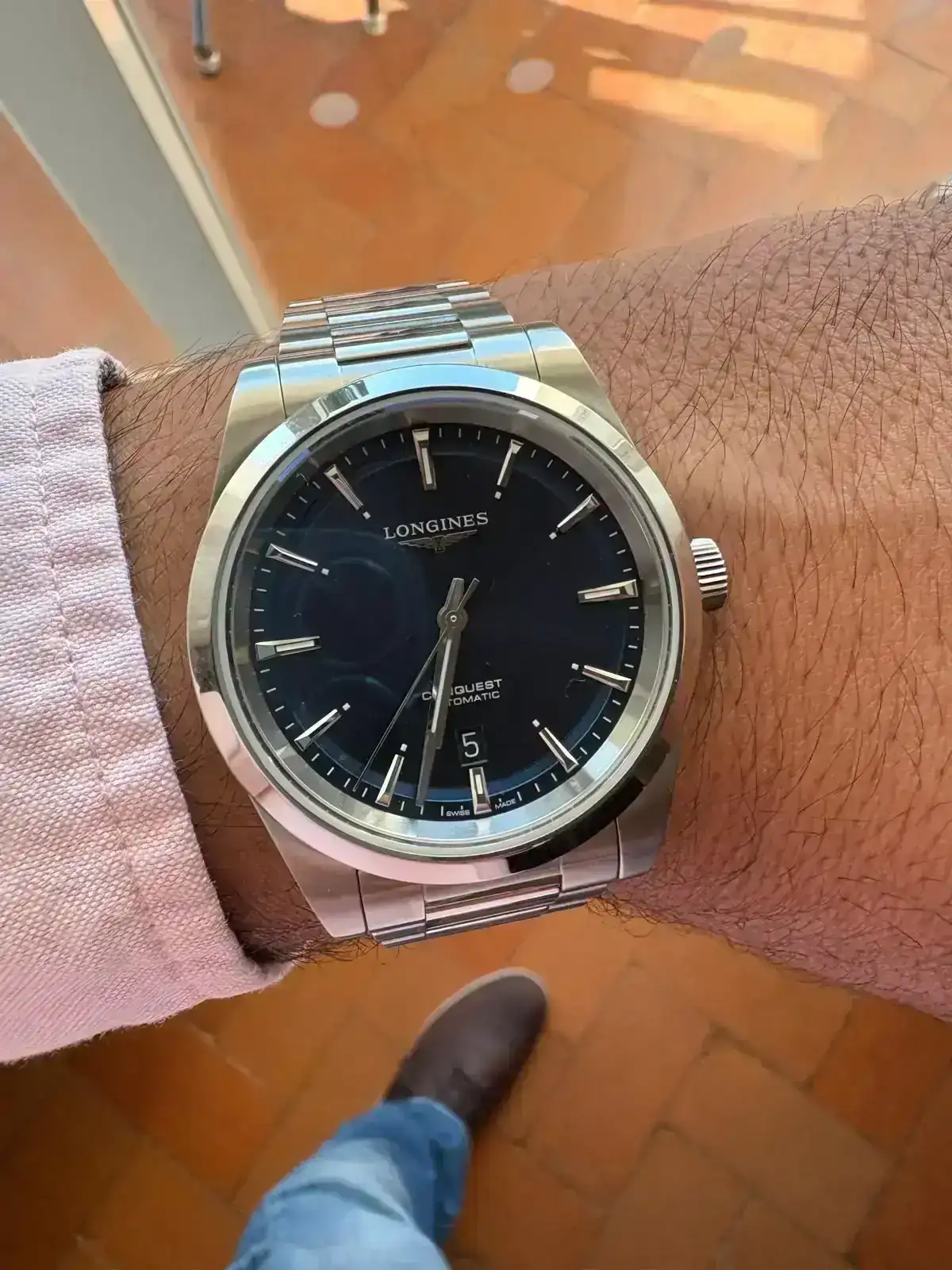 Hace un tiempo, publique un hilo sobre una alternativa al Longines Conquest. Pues bien, al final, no encontre alternativa. Este fue el regalo de San Antonio por parte de mi mujer. (Creo que ya se ha ganado el cielo conmigo por partida doble o triple). Al final me animé y fui por el que realmente me gustaba y no me arrepiento. Es uno de los relojes que siempre tenia en la lista y que ,ahora que lo tengo, no me canso de mirar cada vez que me lo pongo. No os voy a explicar nada sobre el, porque creo que no hace falta y que todo el mundo lo conoce. Lonignes Conquest.