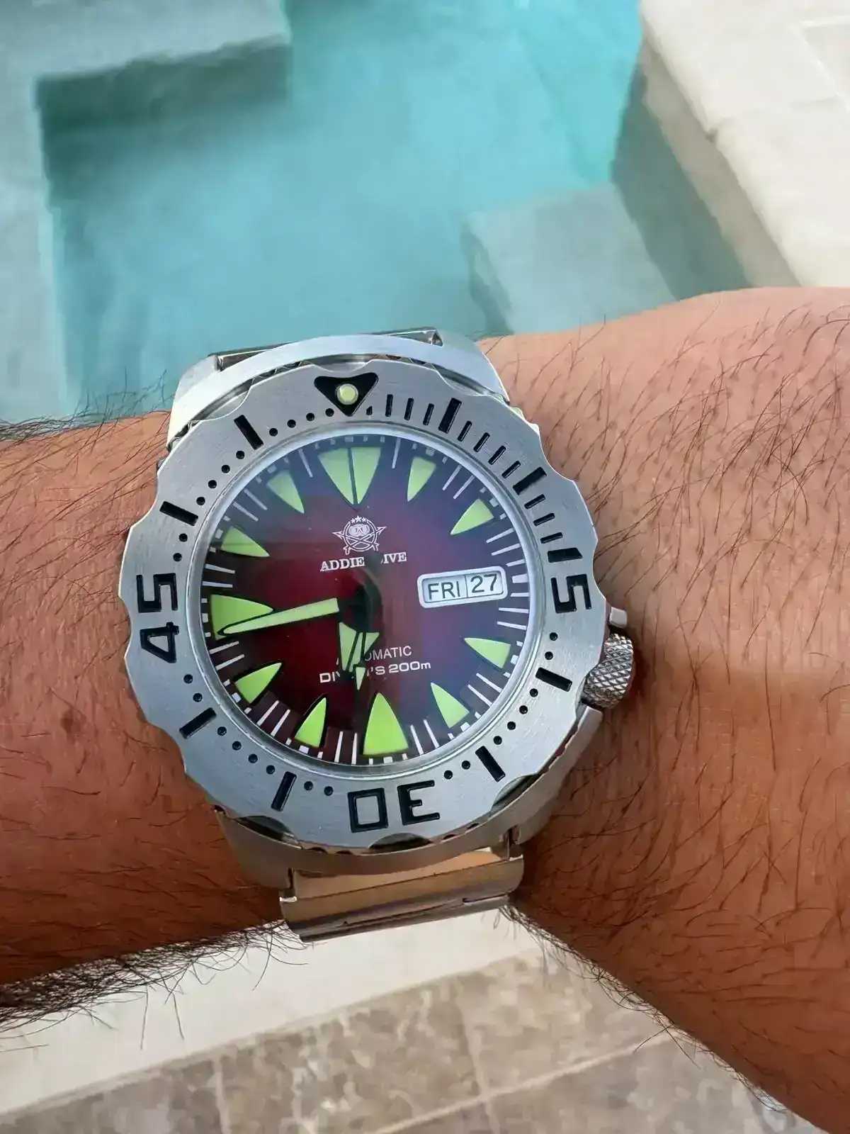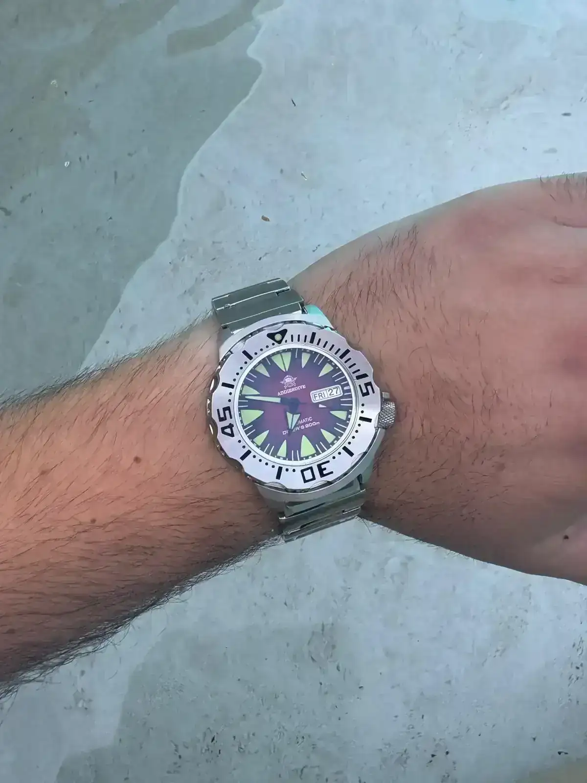 Ha sido el ultimo el llegar. Otro reloj muy conocido en el foro. Se rompio el que usaba a diario en la piscina y buscando y rebuscando por ahi, fué este el que me llamó.
