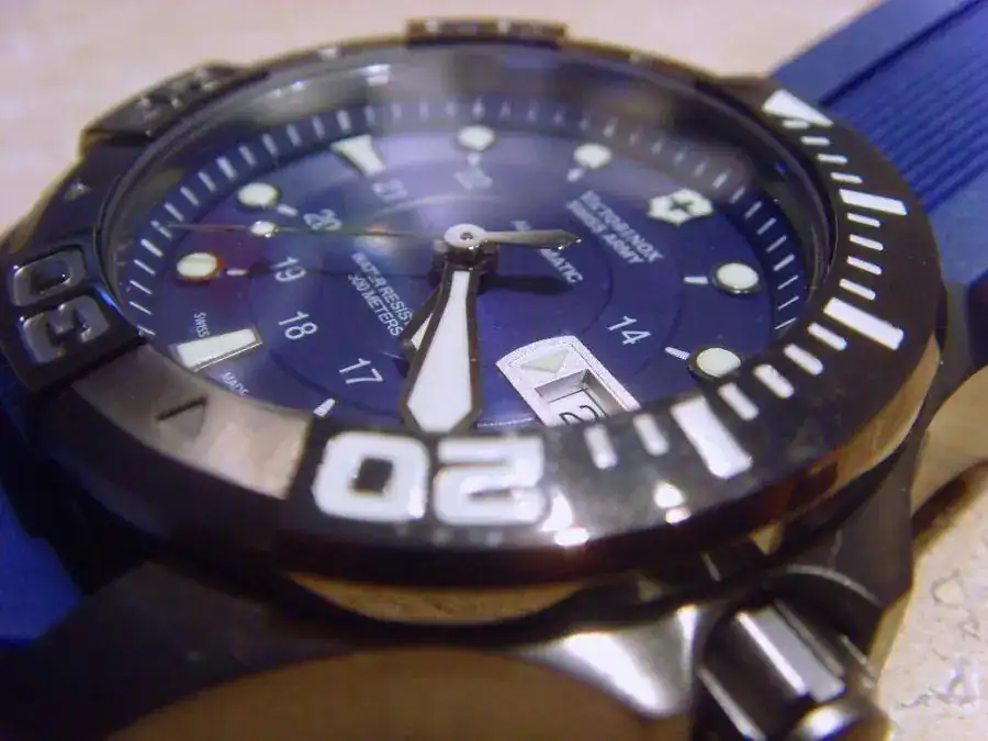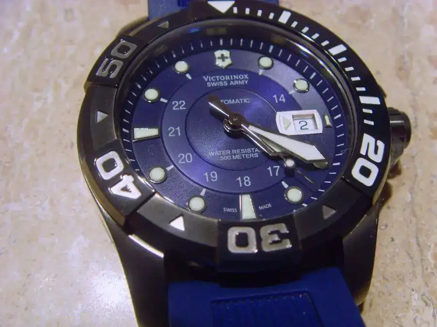 Al final de una ardua y extenuante busqueda de un diver, me e decidido por el Victorinox Dive Master 500 metros el cual me llego este lunes desde New York (Ashford). Lo que finalmente me llevo a decidirme por el fue su estetica original, bisel extraordinario, movimiento ETA 2892-A2 Cristal Zafiro con triple tratamiento antireflectante, correa de caucho original, y su especial PVD que no es negro sino el llamado black ice que el tono es especial, 500 metros y por ultimo su robustez y buenos acabados.