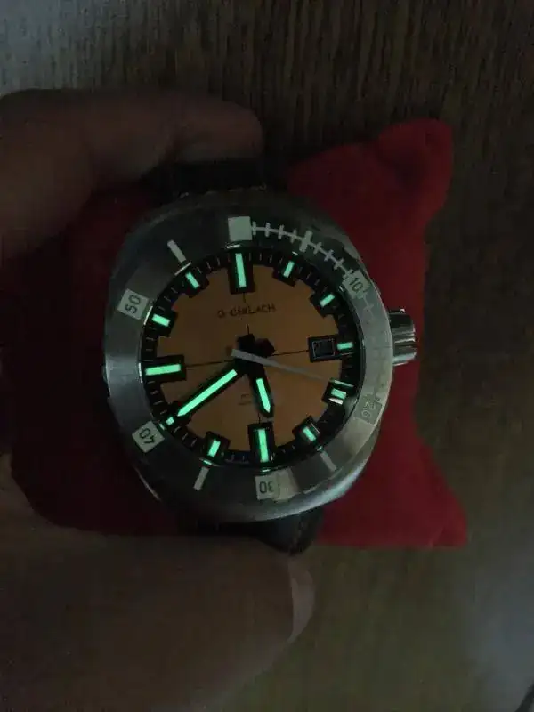 : Esta totalmente cepillada, dentro y fuera de la parte dentada, un detalle que se aprecia. Tiene un excelente agarre gracias a sus dientes. El bicel quiza es uno de los puntos debiles ( junto con el lumen), es bidireccional, ya es extraño, pero aparte de eso hay algo que no va bien, no puedo explicarme, pero no es placentero el rotarlo. No le quita muchos puntos pero es un detalle a mencionar. El lumen en el bicel me cuesta verlo, no es facil de cargar como el del dial pero tiene detalles agradables al ver como se rellenan los ceros.
