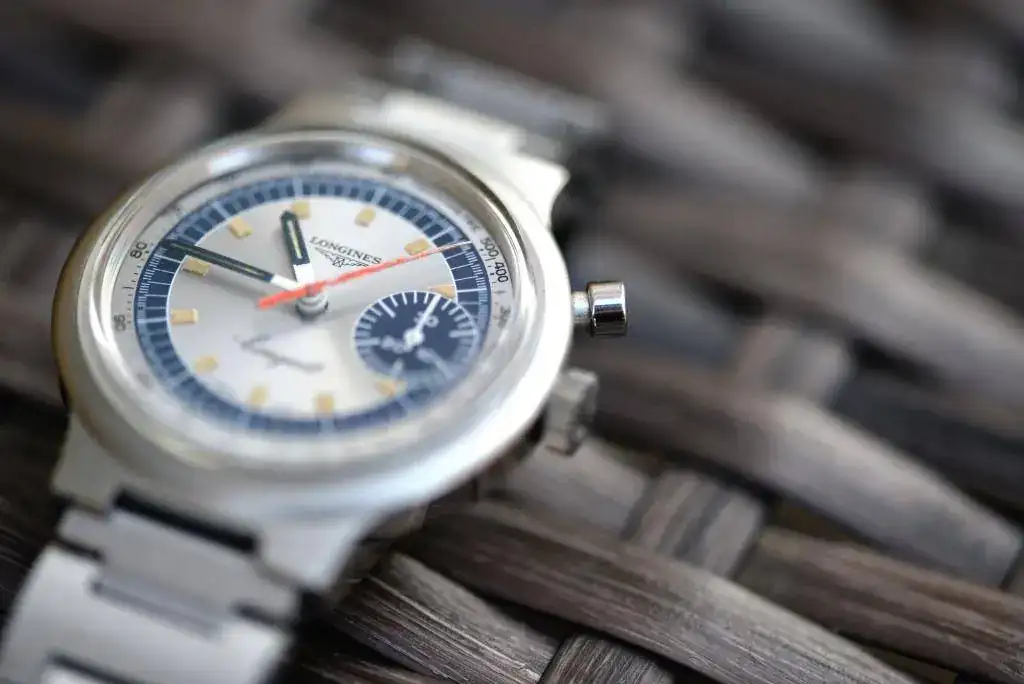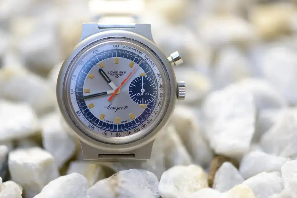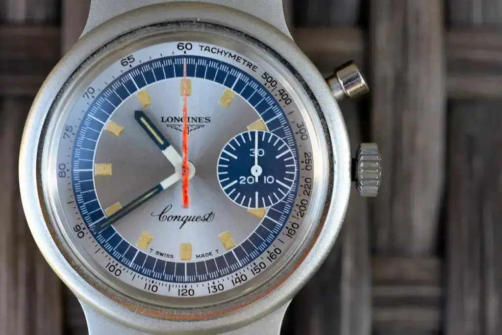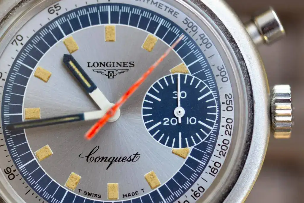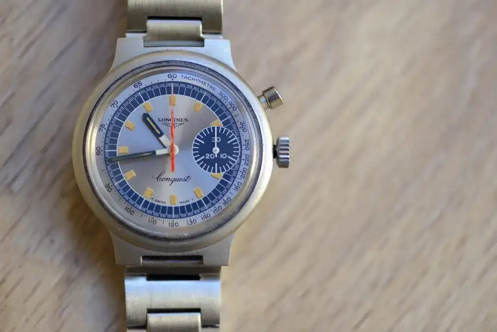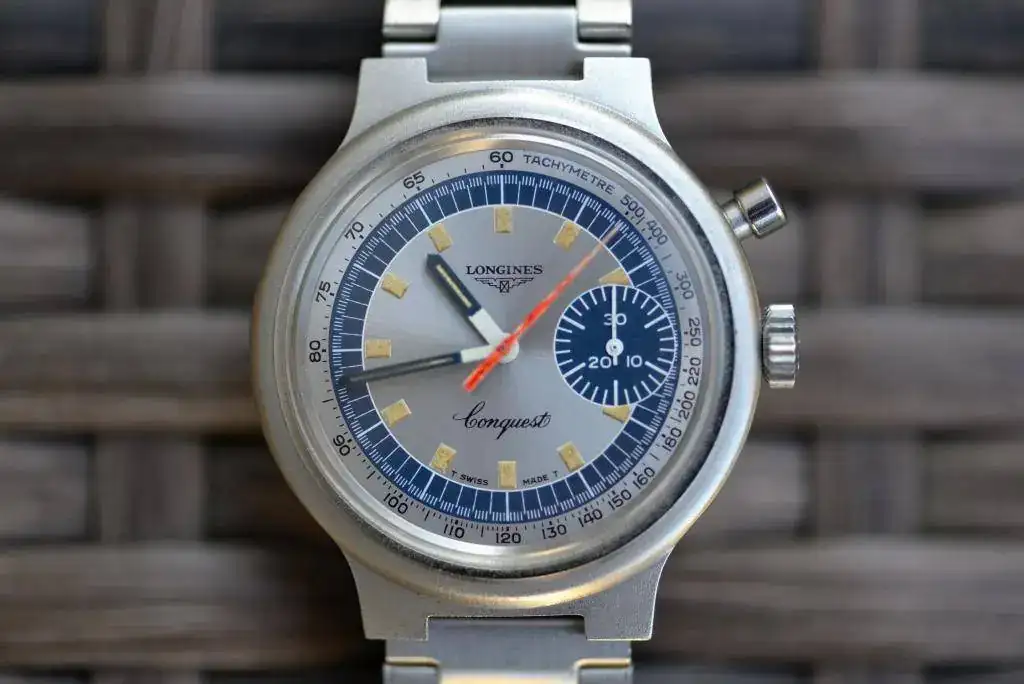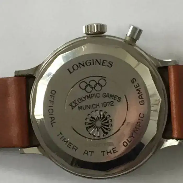 se trata del LONGINES CONQUEST CRONOGRAPH MUNICH OLYMPIC GAMES de 1972. Este cronografo de cuerda manual mono-pulsante lleva el calibre longines 334, que esta basado en el valjoux 326.