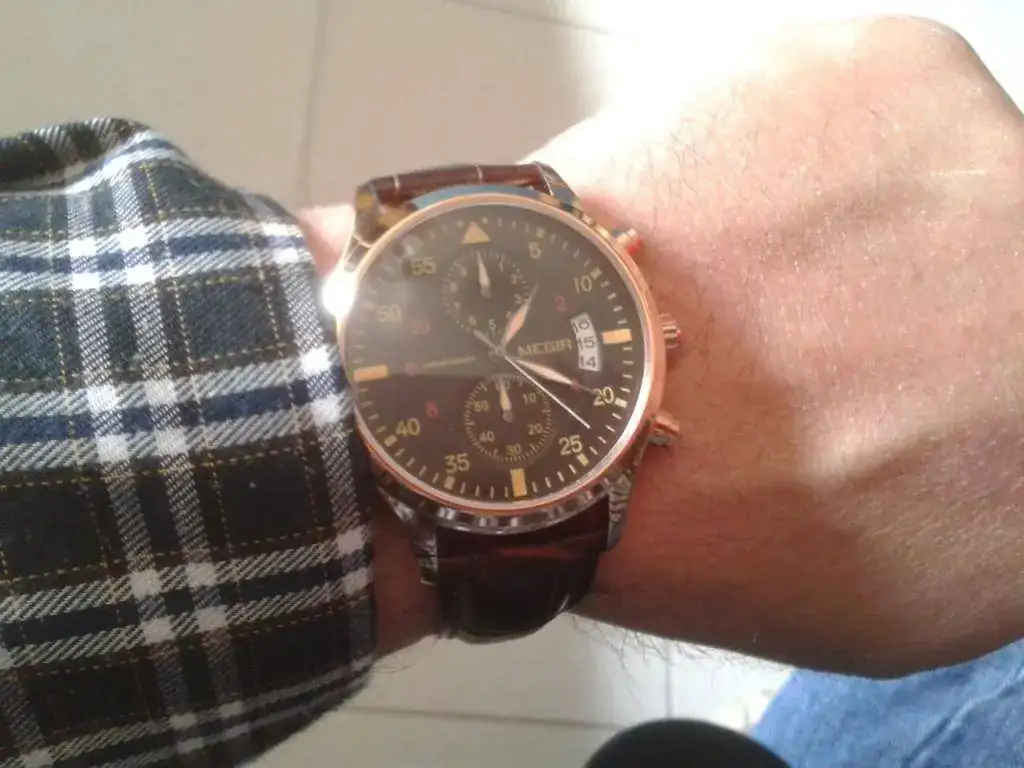 Es un reloj de imagen elegante y desenfadada. El color de latón pulido es muy agradable a la vista, aunque no se como de resistente lo será al sudor (ya se verá). La corona se desplaza sin complicaciones y no se la nota ni delicada ni excesivamente dura.