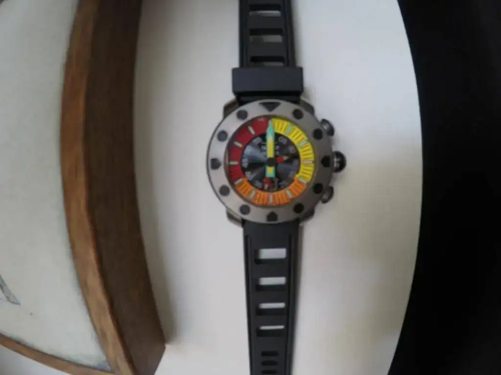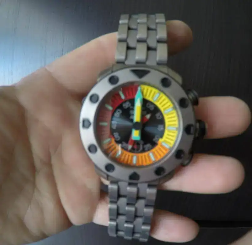 es el mas liviano que tengo ya le saque un eslabones al armis y esta a mi medida que me gusta...pero mas me gusta con la de cuacho negra, este reloj es una edicion limitada de solo 250 hay algunos en ebay desde 2999 dolares maximo, hasta el mas bajo disponible en 800€ he visto en 600 pero ya vendidos, no lo pude comprar nuevo NOS sino a un hombre que trabajo en italia y segun el, se lo dieron en parte de pago de un trabajo, una familia que era amiga de Pellizari y el frecuentaba esa casa, si es cierto no lo se...