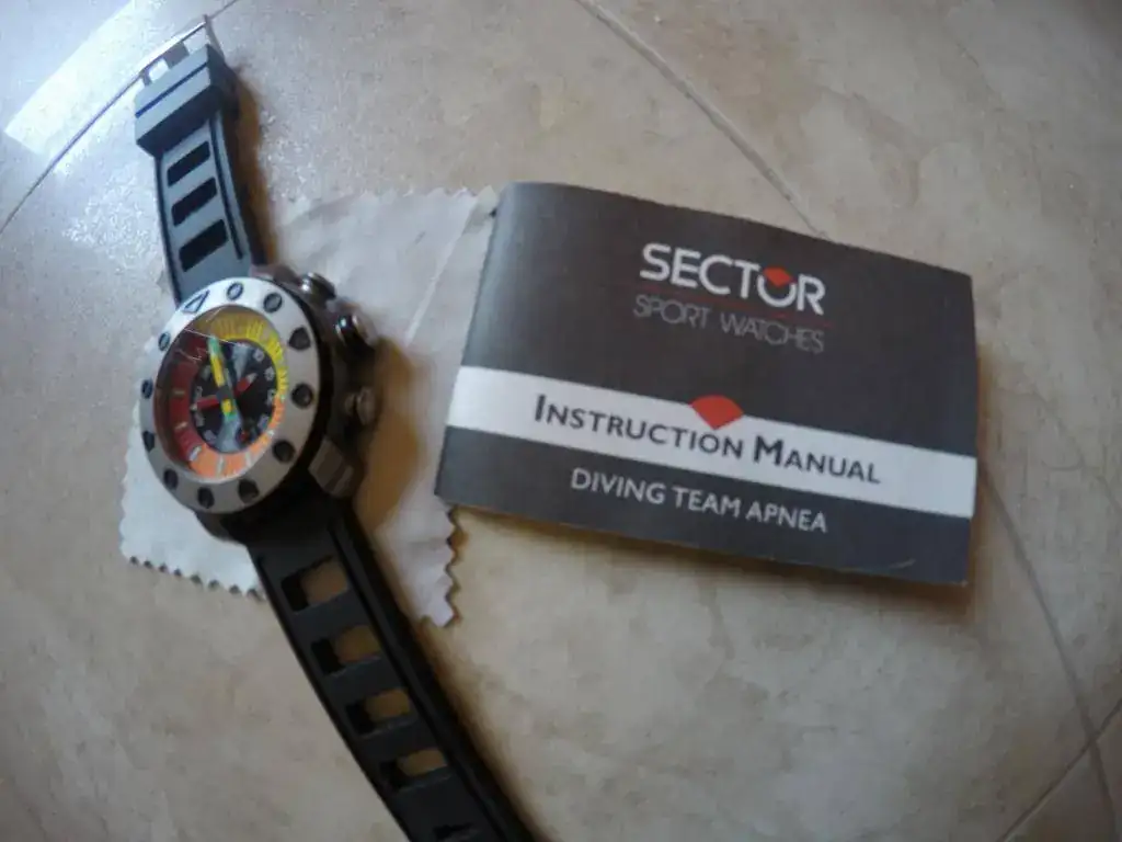 este reloj lo hizo Sector a pedido de Umberto en la epoca del 80-89 donde el trabajaba patrocinado por Sector, esta marca como sabran es de una familia Suiza de origenes Italiano, por lo tanto el reloj es un Swiss made con zafiro, todo titanio y es un cuarzo que lleva el ETA 251.262 el cual esta dentro de la gama alta de cuarzo y lo montan el Breitling Colt, Eterna Kontiki crono, Tag Heuer...y supongo que algunos mas, lleva 5 motores el movimiento y dicen que es muy buena maquina...ya lo ire comprobando con el tiempo