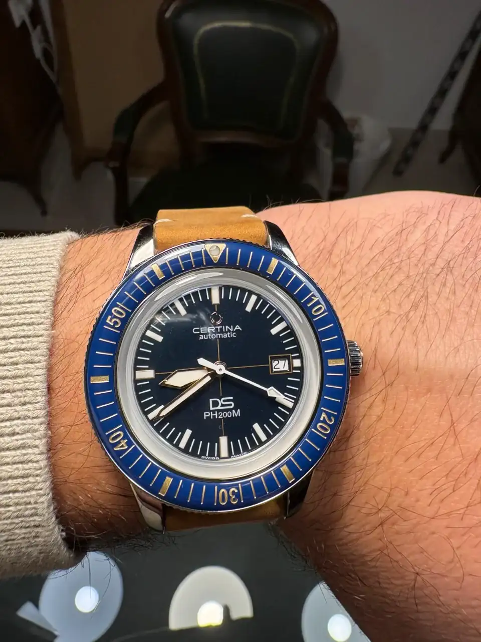 Certina DS PH200. Mi mujer decidio regalarme un reloj y me llevo a un centro comercial. El dependiente era otro enamorado de los relojes automaticos, me enseño su coleccion y me enseño este. Al principio no era el que mas me llamava y sin envargo ahora es de los que mas uso