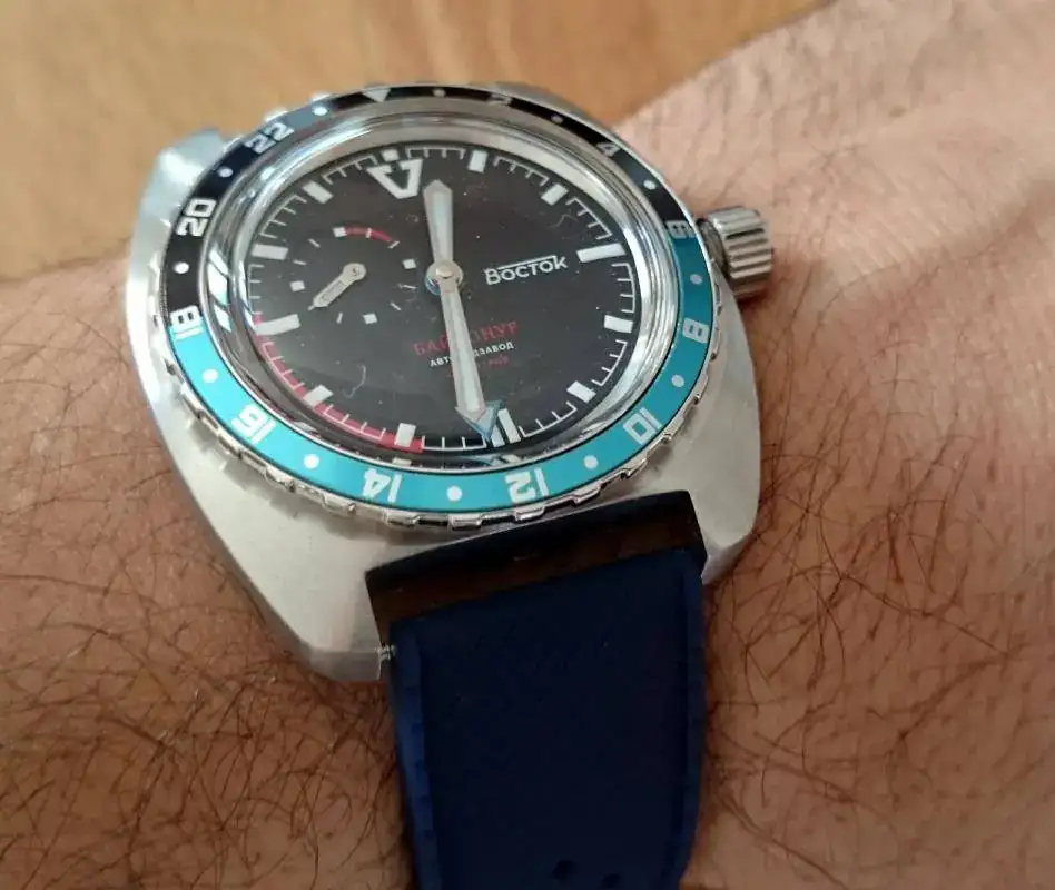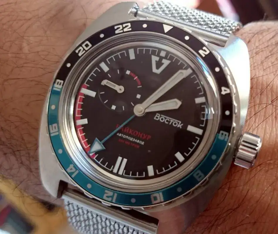 Y ahora tu podrías decir: bueno, también podría girar el bisel hasta la aguja horaria directamente para tener esa doble hora... pues sí. La verdad es que la función GMT la da el bisel, no la segunda aguja azul, que realmente su función es señalar la hora en formato 24 h. A mi, personalmente, me gusta ajustar el GMT sobre la aguja secundaria, ... pero eso son gustos.