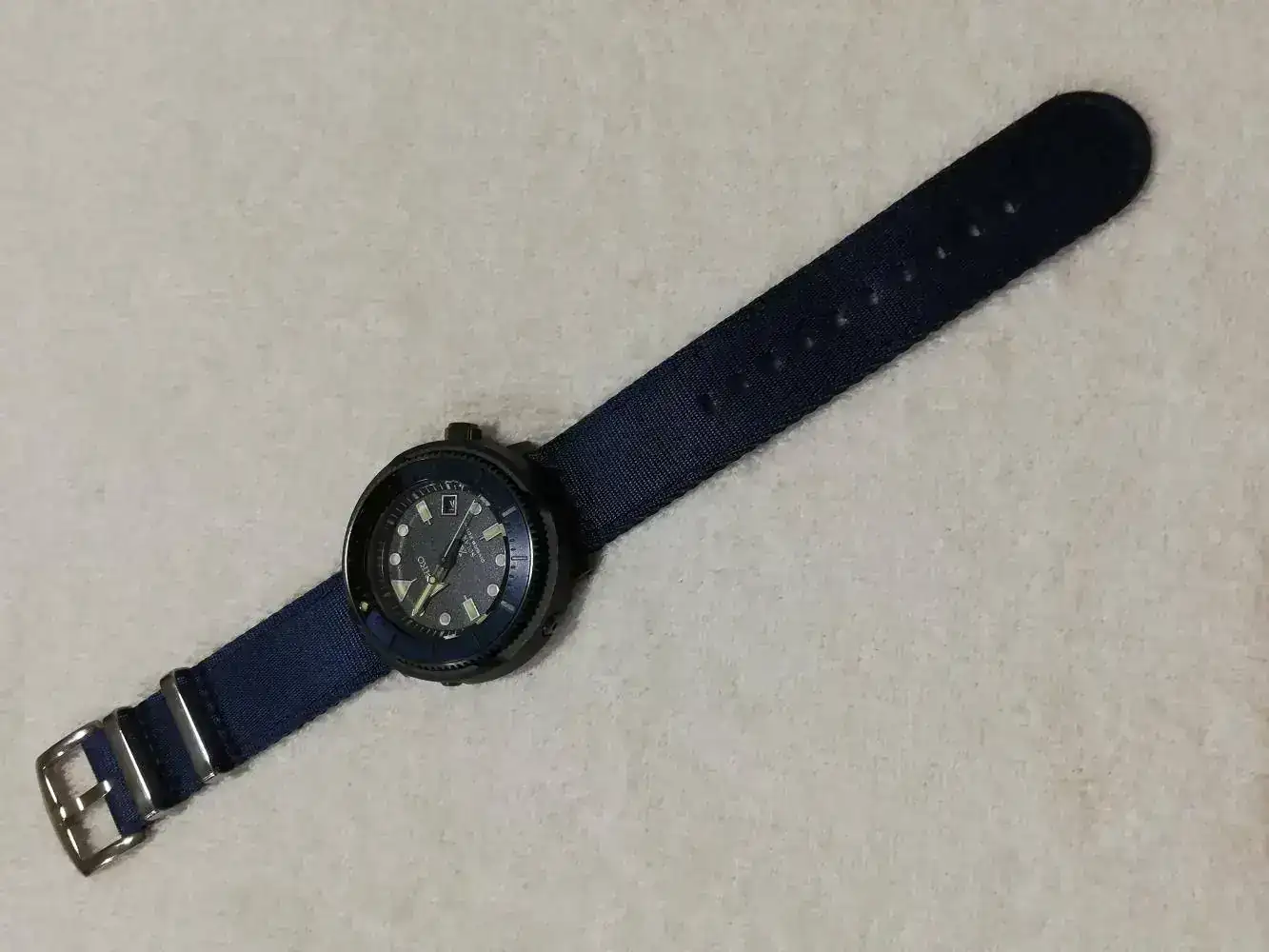 No es un modelo muy visto por aquí, quizás por el hecho de no ser automático. Se trata del Seiko Prospex solar SNE533P1. Es el primer Seiko que compró, el otro es heredado de mi abuelo, y ya hice su presentación en el subforo de Seiko, https://relojes-especiales.com/threads/por-fin-he-terminado-el-seiko-de-mi-abuelo.515004/