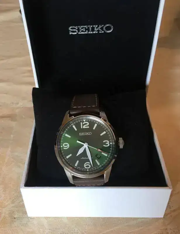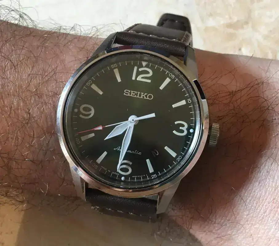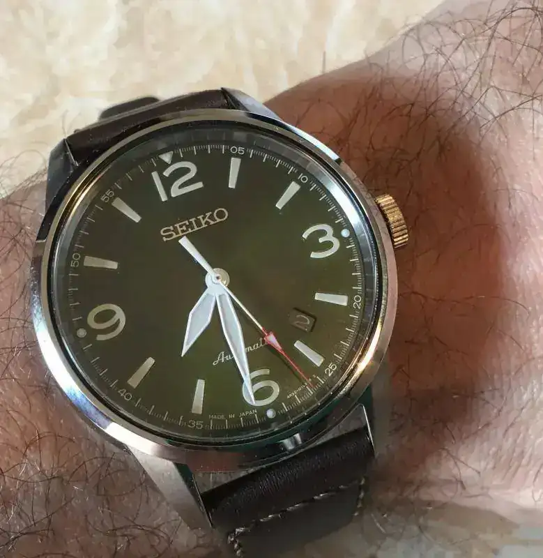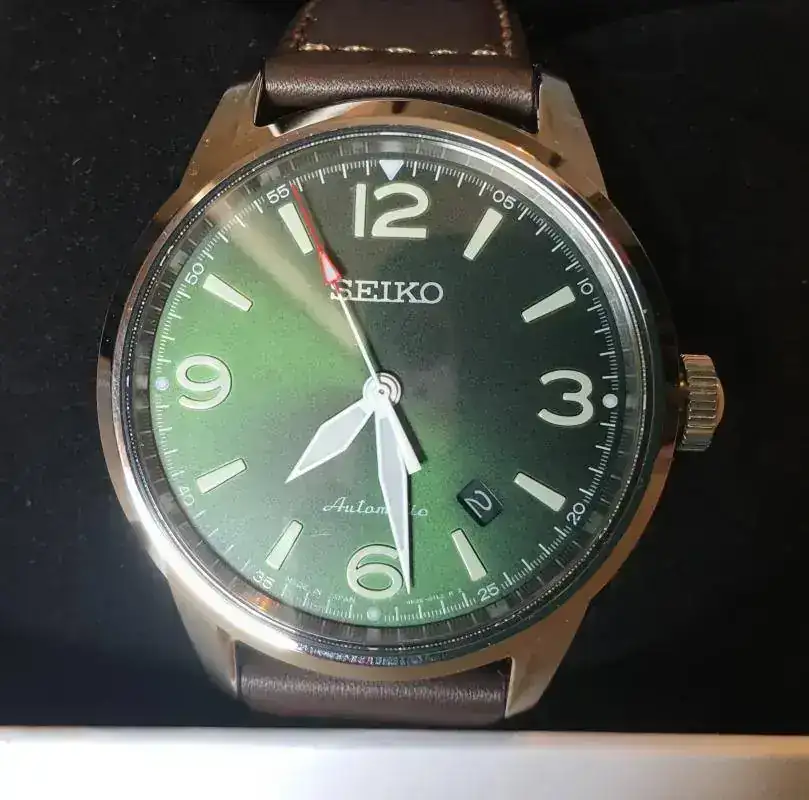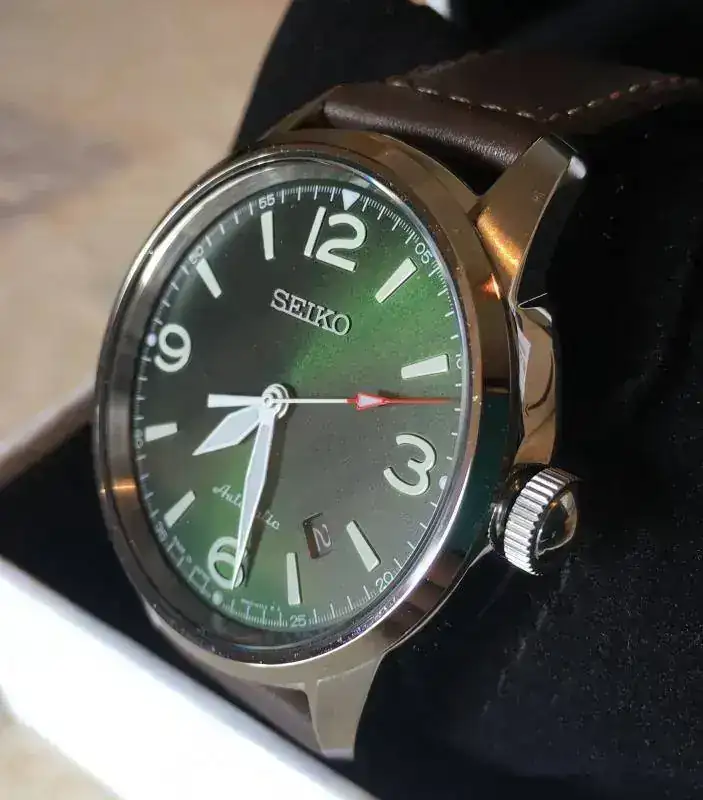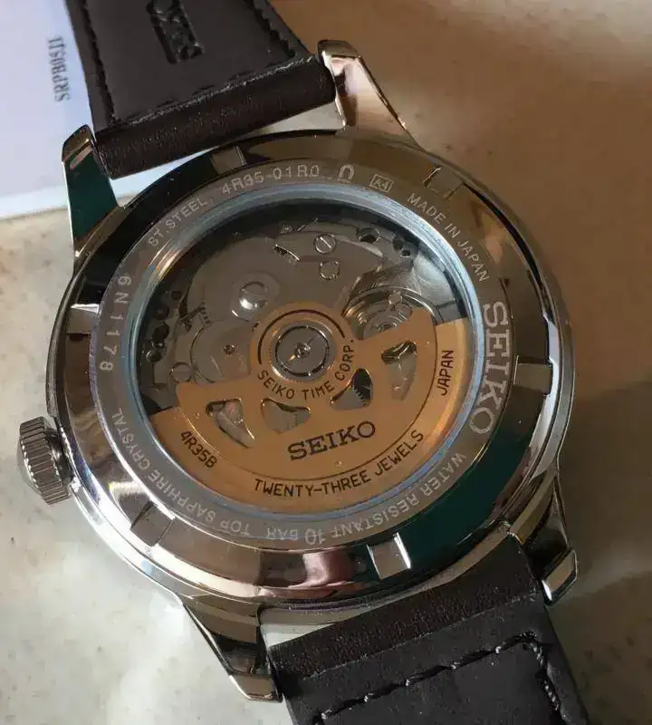 El diámetro es de 42 mm, tiene cristal de zafiro y la maquinaria en 4R35B, los expertos en Seiko podrán decir si es buena, mala o normalita yo la verdad no tengo ni idea.