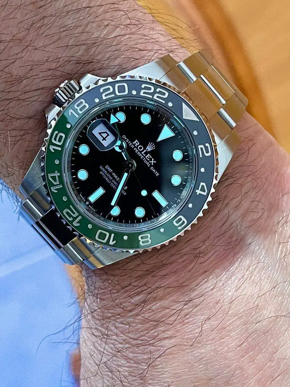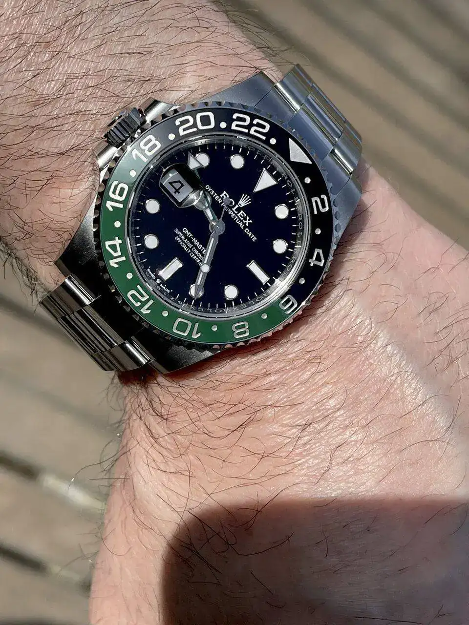 Pero una vez en su sitio, se ve muy diferente a lo visto de siempre, pero a la vez igual de cómodo. La verdad, muy contento, una rareza en Rolex, diferente a lo establecido y el verde le queda muy fresco.