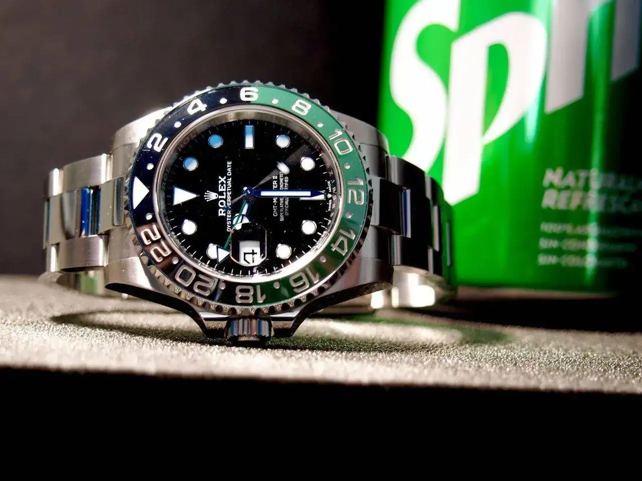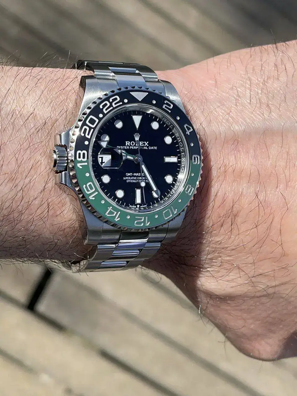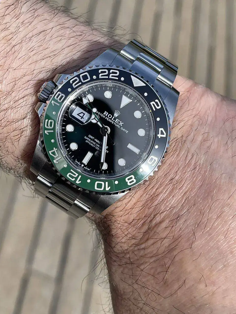 Enhorabuena, compañero. A disfrutarlo con salud! Y no apetece ponértelo en la mano derecha?Ayer recogí mi GMT “Sprite” como lo llaman, primero cuando me dijeron que llevaba brazalete Oyster me dio una alegría, teniendo el Pepsi con jubilee, en este nuevo me gustaba el oyster y que se vea diferente .