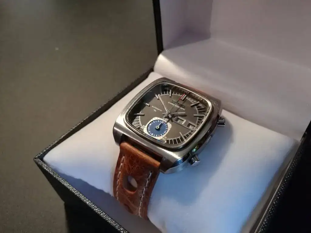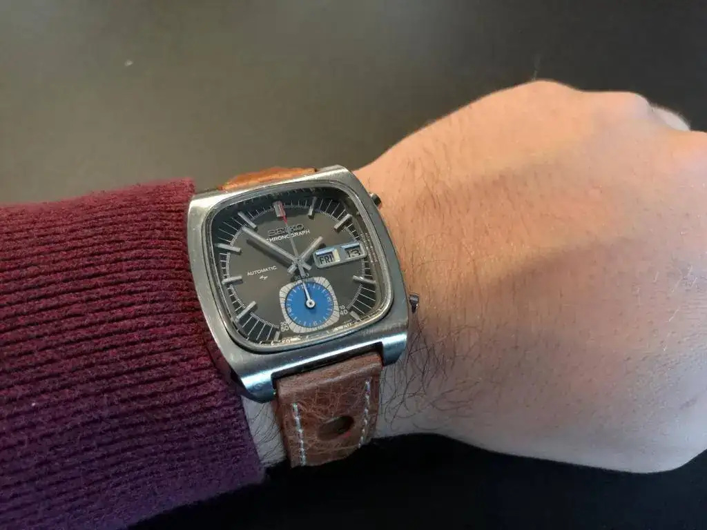 Se trata de un Seiko 7016-5011, un chronogaph de la marca nipona, al cual apodaron como Mónaco, entiéndase como un humilde parecido al emblemático Heuer Mónaco.
