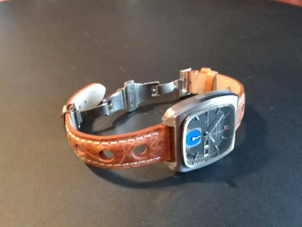 ¿El resultado? Pues como soy un culo inquieto, lo primero que hice fue cambiarle el armis por una correa tipo racing en piel de becerro, marrón claro envejecido, con su correspondiente cierre deployante, que junto con el inmejorable trabajo del Maestro, pues EMHO es fantástico.
