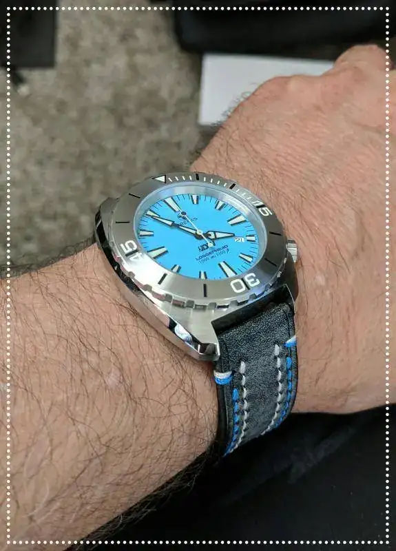 Es de los pocos Crepas, si no me falla la memoria, no inspirado directamente en un diver clásico y/o exótico, básicamente porque se trata de un encargo de DW. Va un poco en la línea del Scuba. No obstante los administradores de DW son muy fans de Doxa, o al menos esa es mi impresión. El Loggerhead esconde algún detalle que rinde tributo y no es sólo el beads of rice... Esos pequeños detalles compensan la parte más, digamos "comercial", que ofrece el reloj, sobre todo para los que están más acostumbrados a la línea argumental de Crepas previos.