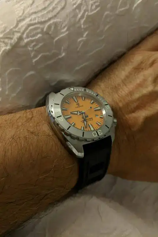 El tono del nivel de acabados es más que correcto. No puedo valorar aún el ajuste de calibre. El full lume de la esfera recién cargado es una linterna, pero todavía tengo que valorarlo de madrugada en uno de mis frecuentes desvelos. Juego de agujas peculiar... a mí no me disgusta pero entiendo a quien no le convenza. El cierre del brazalete a mi juicio no es el mejor de los montados en los Crepas. La tapa posterior es como para llevar el reloj del revés... quizás de lo mejor que he visto en un diver de este rango de precio.