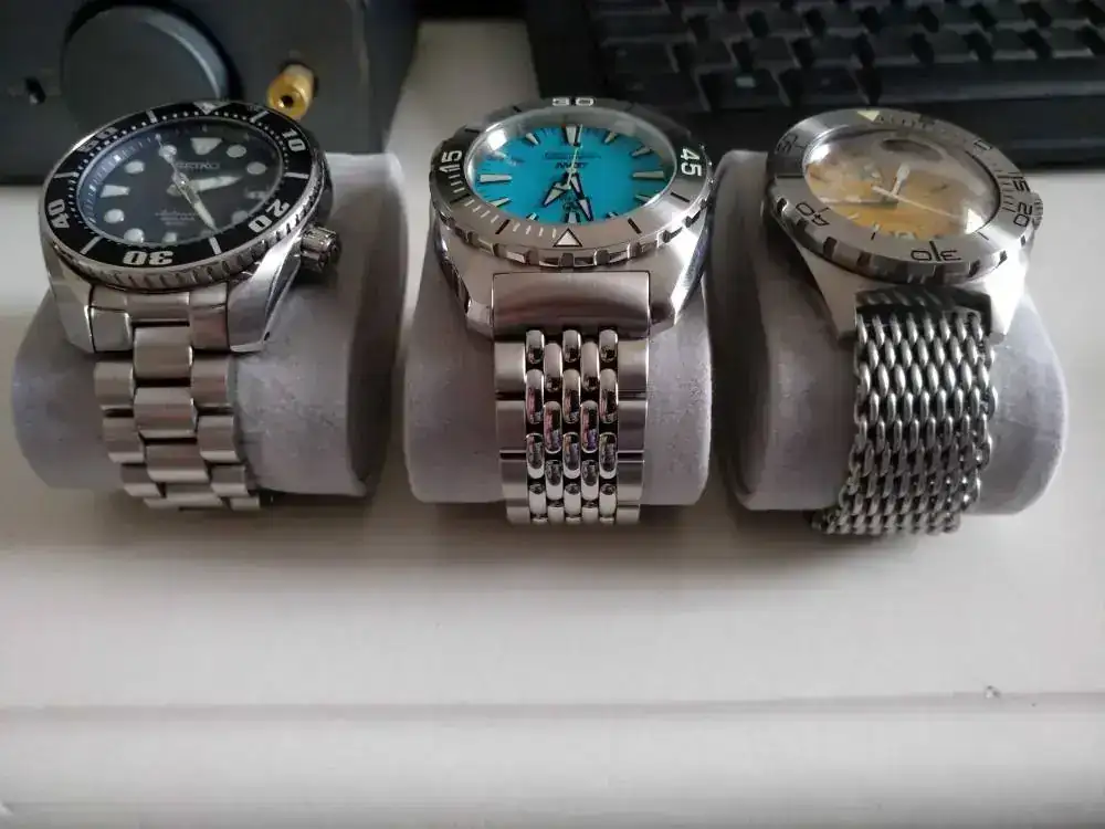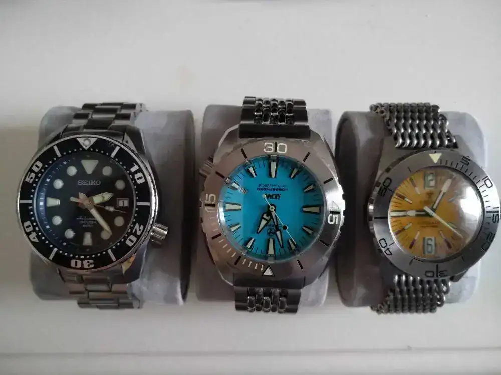 Hola no sé si llego tarde pero hasta hoy no me ha llegado el loggerhead. Aquí están los tres, mi muñeca es de 17,2 más o menosEso mismo pensaba yo con el Seiko Sumo, pero me lo probe y a mi juicio me queda perfecto, aunque tengo la muñeca pequeña la zona donde asienta la caja la tengo ancha. Pero bueno, esperare al Tornado a ver que tal.