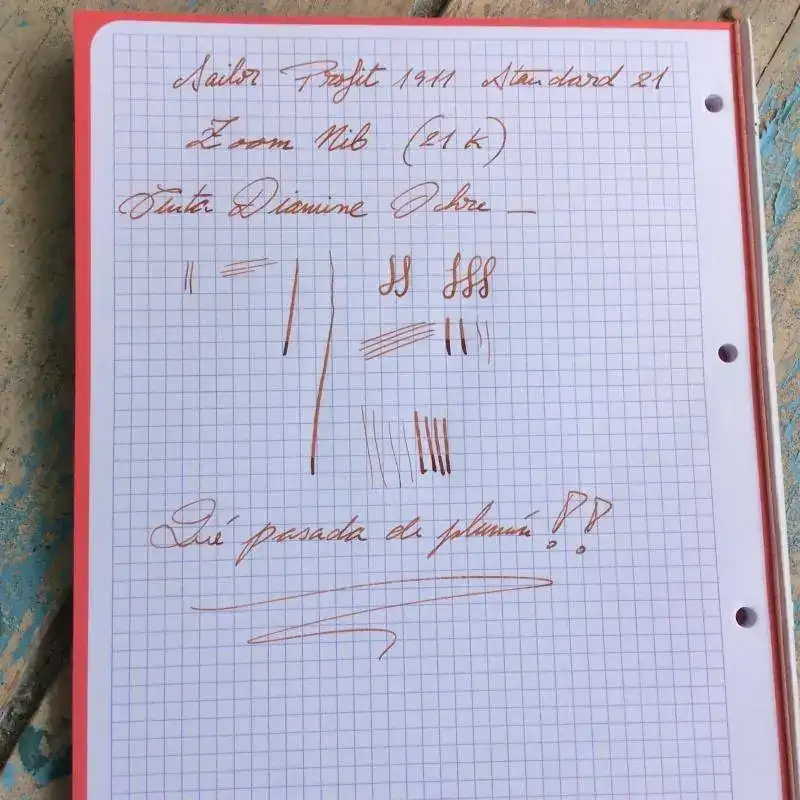 Escribiendo casi vertical, es un punto fino jugoso, y a medida que inclinamos el plumín, se va haciendo más y más grueso, hasta un BB, diría yo. Esa creo que es la principal característica del Zoom Nib.