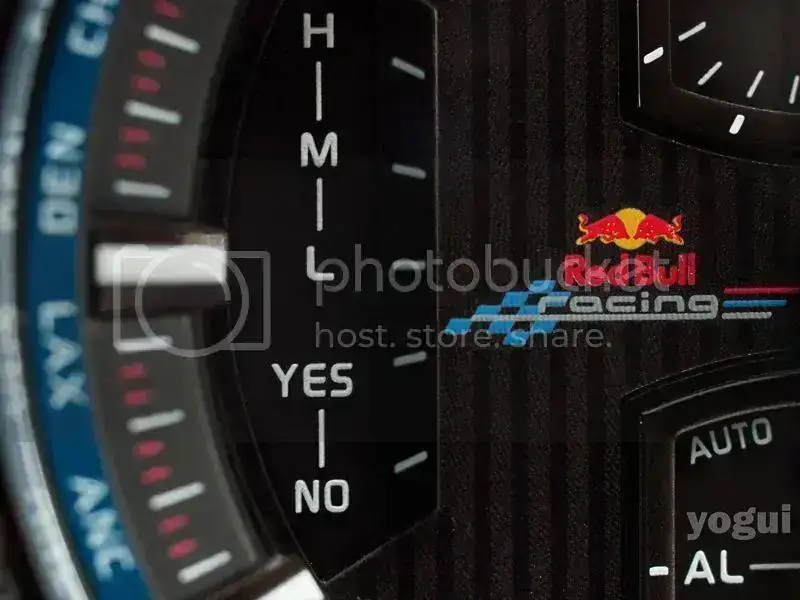 a las seis, al lado del grafico de estado de carga y recepcion, tenemos el anagrama del Reb Bull Racing.