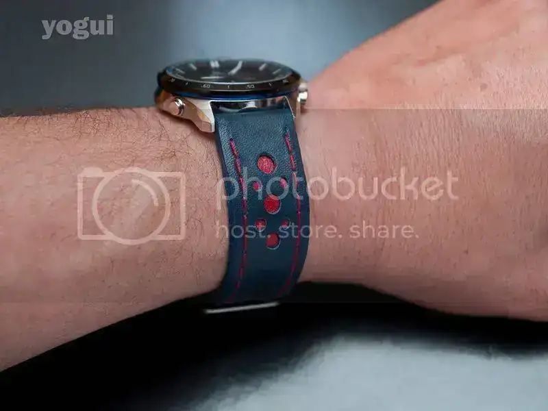 utilice el azul como color principal, y detalles en rojos, ya que estos dos colores son utilizados por el equipo reb bull, unos agujeros para darle un toque racing a la correa y salio esto, la correa es muy particular, y no se la pondria a otro reloj, pero el conjunto me encanta como ha quedado.