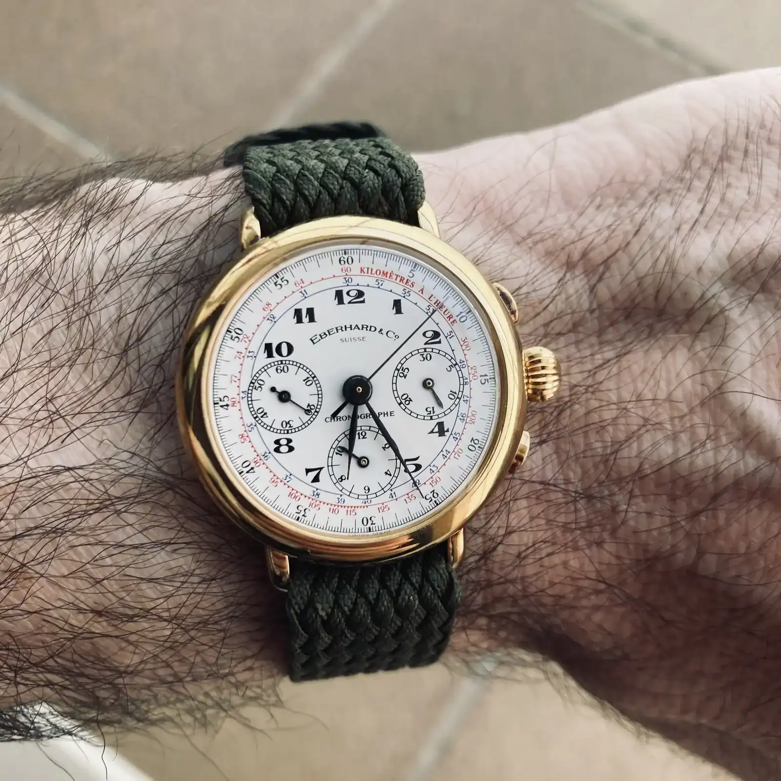Ese Eberhard es una auténtica joya de la época dorada de los cronógrafos. El calibre Lemania que late en su interior es pura historia de la relojería; robusto, estético y con una marcha que suele ser envidiable a pesar de los años.