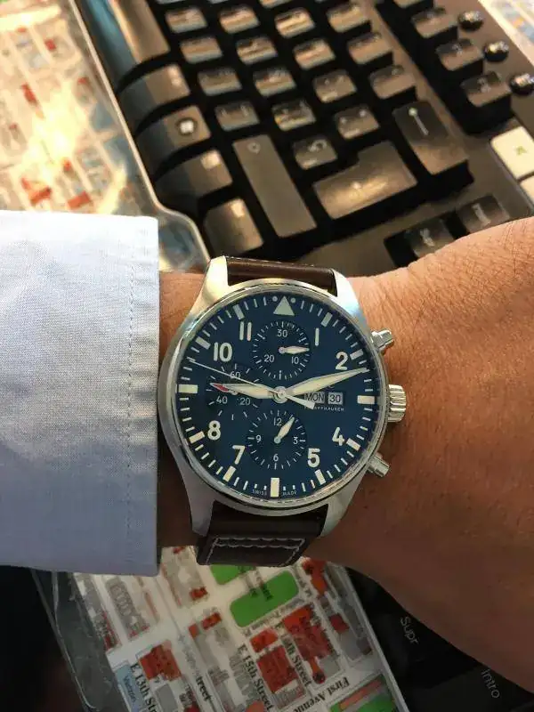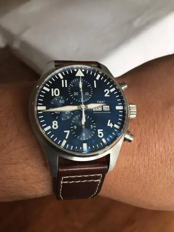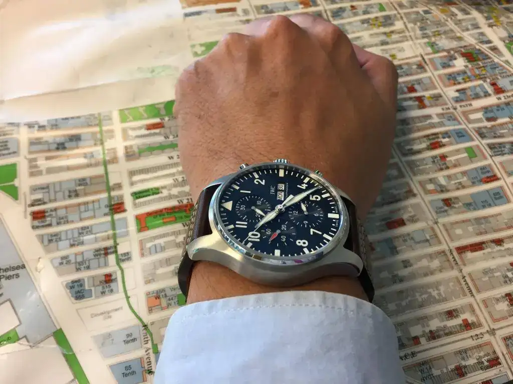 Bueno, pues tras haber jugado un poco con el armis y la correa de piel, os presento mi última adquisición, un IWC Pilot Chrono Petit Prince. Cuando lo estaba considerando encontré muy pocas fotos on line, espero ayudar a posibles futuros compradores con las mías.
