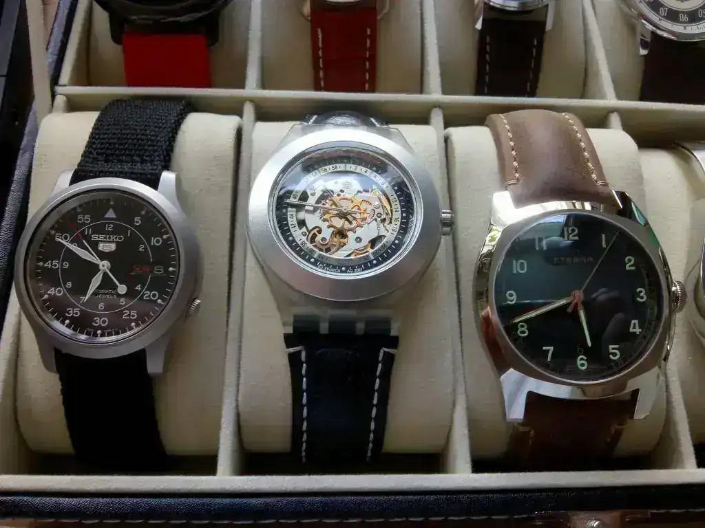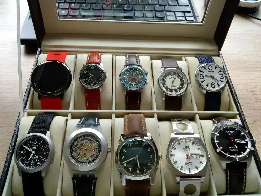 Me complace presentaros mi pequeña colección relojeril. En este caso no se compone de grandes piezas, pero si algunas de ellas de valor sentimental para mí, por recuerdos o momentos en que dichos relojes entraron a formar parte de ella. Desde que comencé más de 10 años atrás, ningún reloj salió para dar cabida a otro, y de momento no creo que vaya a darse el caso, ya que la verdad me daría bastante lástima dejar de ver alguno de ellos, por el apego que les tengo tras el paso del tiempo.