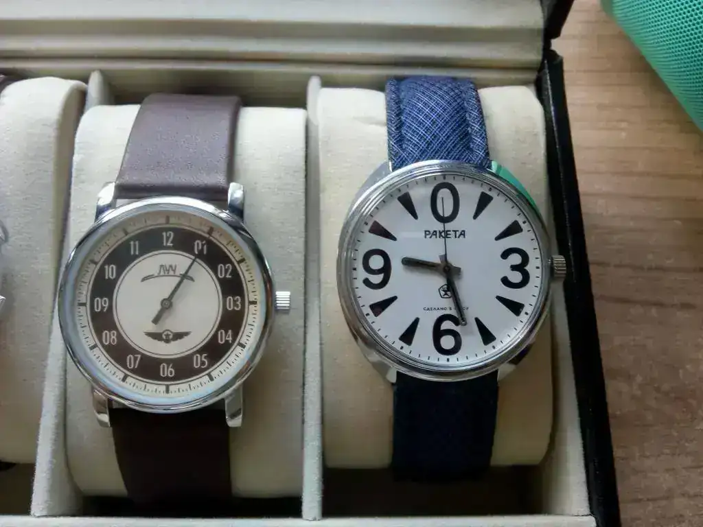 5. Raketa Big Zero. Las agujas no son las originales, pero me gusta porque lo conseguí en el mercado de segunda mano Izmailovsky, en Moscú. El mercado es impresionante, lleno de antiugos relojes y cachivaches soviéticos, incluyendo armas de la Segunda Guerra Mundial.