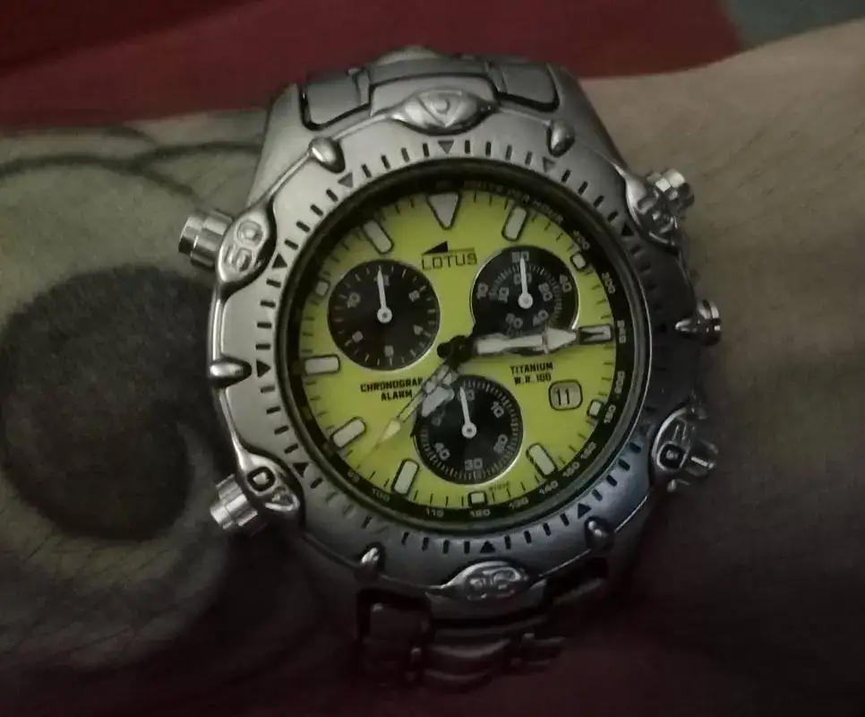 Yo también tengo un Lotus Titaniun y lo cierto es que le tengo mucho cariño, mis padres me lo regalaron nada más salir a la venta a principios de los 90 y recuerdo que su precio en aquellos años no era precisamente barato, al cambio de hoy serían bastantes euros, el crono montaba un excelente movimiento Miyota de cuarzo que ya quisieran muchos actuales.[/QUOTE