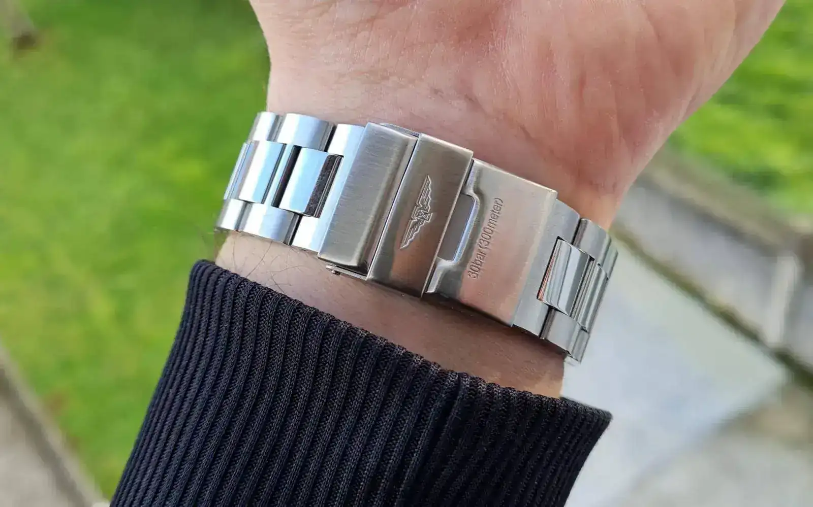 El armis es bonito, de 22mm de ancho en toda su longitud. Esto complica un poco comprarle correas, yo quería coger un caucho original pero creo que no hay de ese ancho. Trae extensión para buceo.