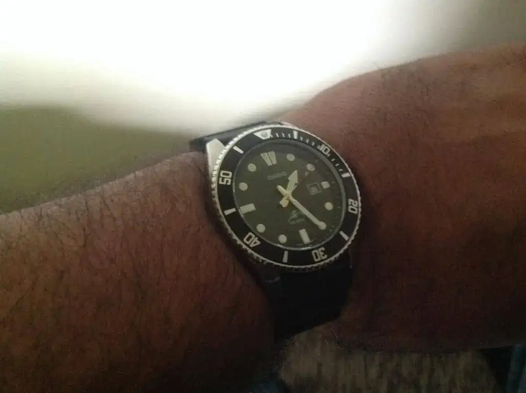 , mas bien estaba en compra de un asador ya que aqui en Seattle ya salvo el sol y hay que aprovechar al Maximo estoy 3 bellows meses de sol que nuestra madre naturalization nos regala, luego de 9 meses de lluvia.El punto es que cuando lo vi en ESA tienda que estaban liquidando me miraba con cara de comprame, necessity amor y solo cuesto $25.00 dolaritos, aunque sea un cuarzo, soy bast ante dingo y asi fue que me compre mi marlin! un CASIO MDV-106-1 y aqui se los muestro, el sera a partridge de hoy mi compañero por estos 3 meses donde pasara todo tipos de pruebas extremas y al final les contaré que tal!!!!!