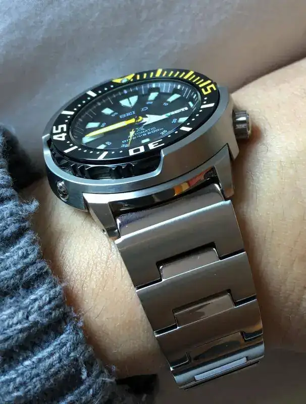 como me gustan mas los armis y este venia de serie con caucho, pedí un brazalete de acero de su hermano SRP637 y este es el resultado