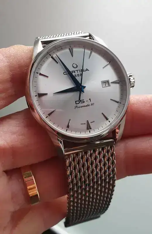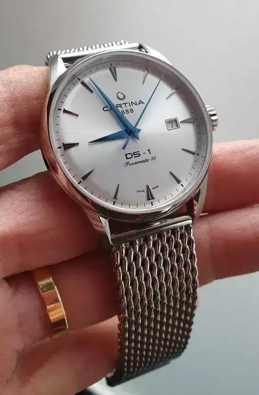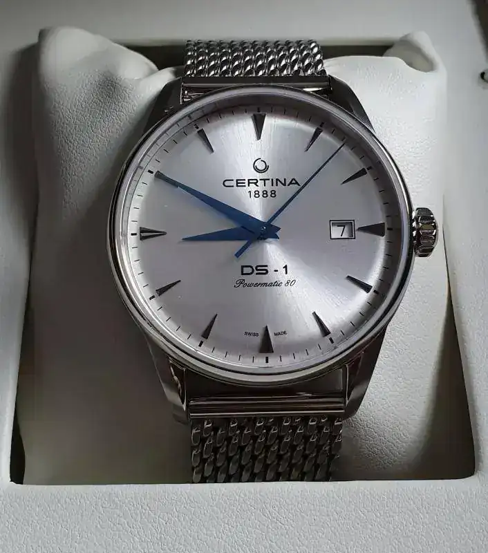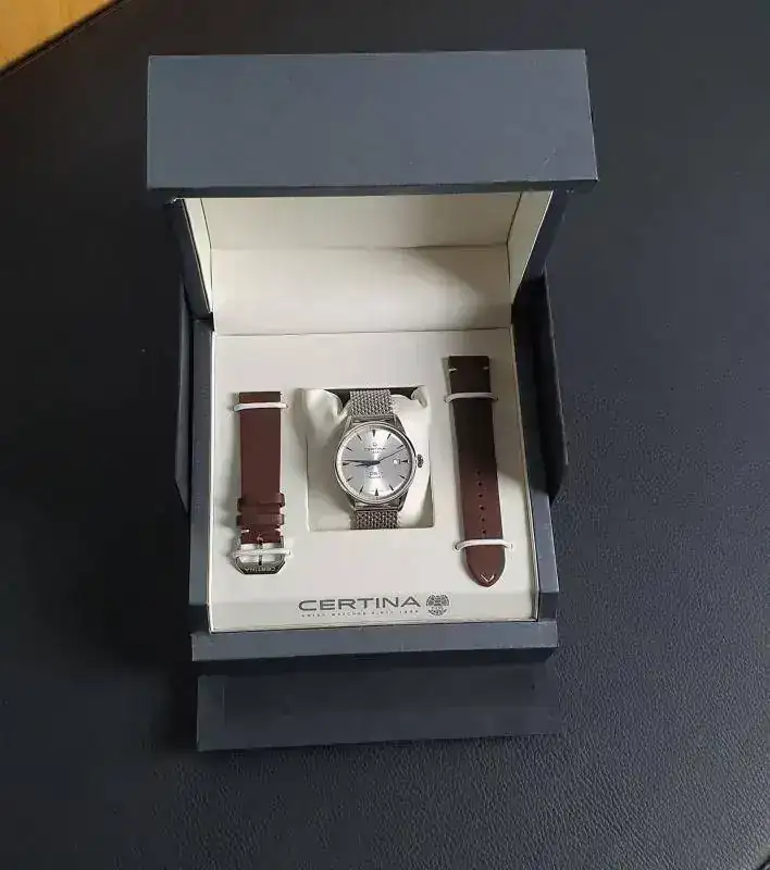 Una cosa tenía clara, la marca, pero el modelo no tanto. Eso sí, nada de divers que voy sobrado. Estaba entre el 60 aniversario de Certina (el verde con calendario a las 6), y este que os muestro a continuación, pero no había tenido en la mano ninguno de los dos.