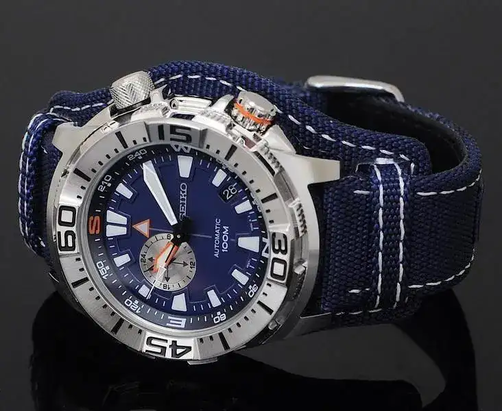 De serie viene con una correa de nylon azul, pero yo no puedo llevar un reloj si no es con armis así que le compre un Seiko 30081 en chronograph.com y este es el resultado...