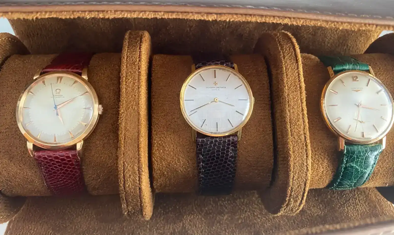 Los relojes en cuestión son un Longines con calibre 30L de los años 60, un Vacheron Constantin también de los años 60 con una Preciosa esfera de lino y el último en llegar por mi cumpleaños, un Omega bumper de los años 50.