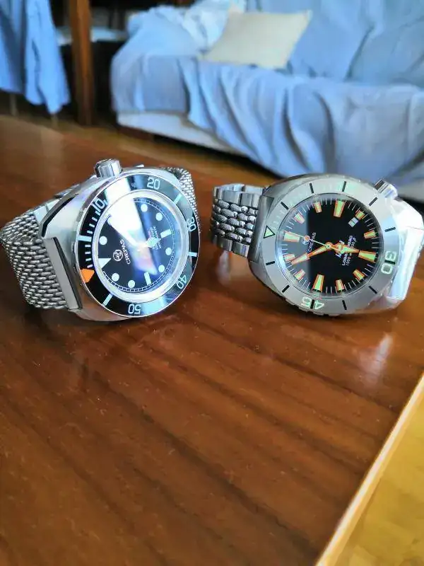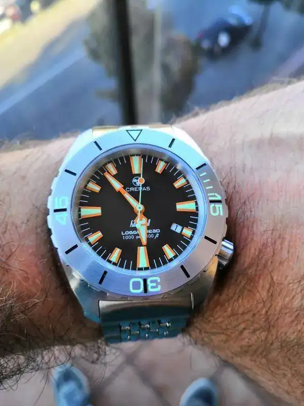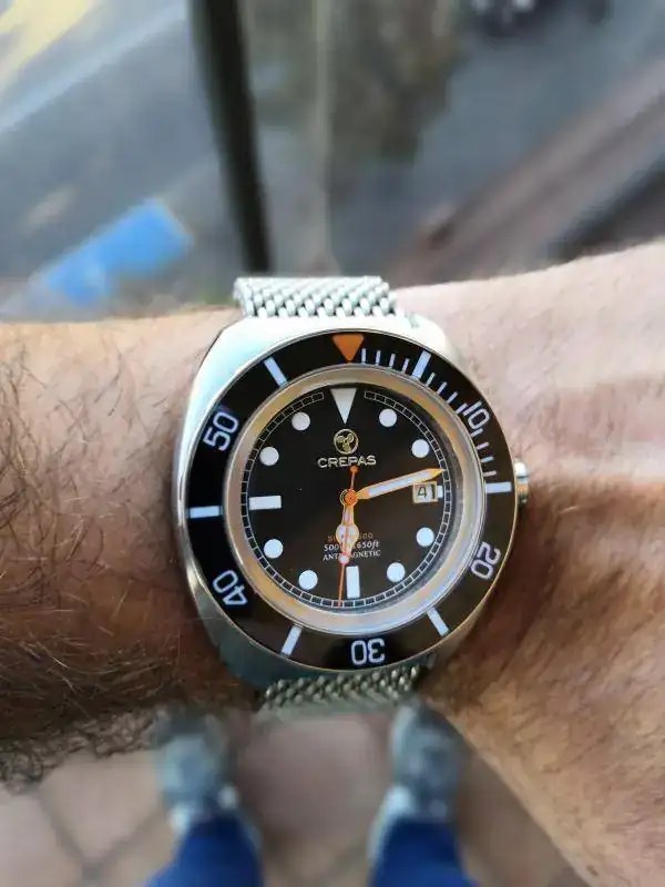 Hola a todos!! Pues nada, estava yo esperando a que pudiera cerrar el trato del crepas scuba para poder presentar lo que espero que sea el principio de una larga relación. El caso es que empeze curioseando en el foro y vi esa marca llamada crepas que la verdad me entró curiosidad, los veía muy bonitos y robustos, pero no conocía mucho la marca por no decir nada. Total me informe, leí un montón de hilos en el foro, que si blablabla todo perfecto, que si otros rajando a full, total me decido y compro el nuevo Loggerhead. Me llega, gratamente sorprendido con lo que tengo en las manos y sabiendo lo siguiente a buscar me pongo en busca y captura del scuba 500,para mi precioso en todos los aspectos, hay a quien gusta y a quien no, pero a mi me tiene loco. Lo encuentro, lo compro sin más (decir que el vendedor un 10, gracias husabergangola). Me ha llegado hoy por la mañana y es más de lo que esperava, un reloj bien echo, contundente, con una buena presencia, buen calibre, tanto el Loggerhead como el scuba, hasta dia de hoy de lo mejor que e tenido los 2. El loggerhead solo puedo hablar maravillas, una vez lo llevo puesto me hace gozar, disfrutarlo, por que a pesar de ser relojes de gran diámetro son cómodos y bien trabajados. Solo quería explicar que soy feliz con estos bichos y espero que lleguen más. Gracias por leer y llegar hasta aquí con mi discurso. Os dejo unas fotos.