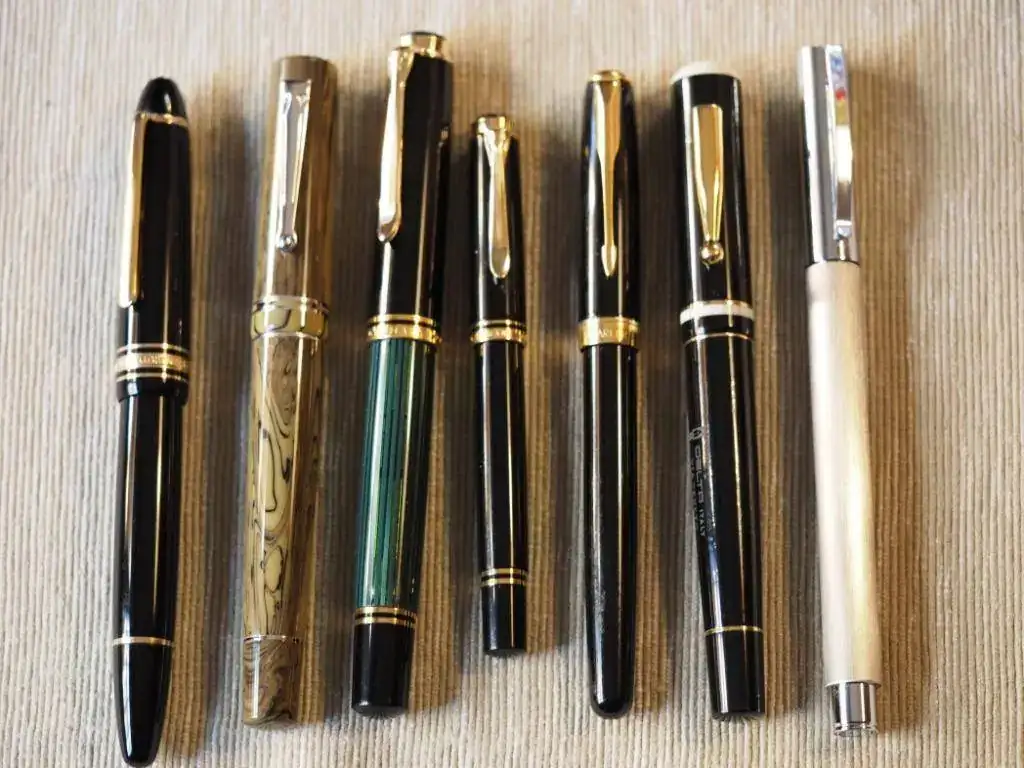 Foto 7: Montblanc 146, Delta The Journal, Pelikan 800, a su lado una Pelikan muy pequeñita (¿M300?)), Parker Sonnet, Delta Via Veneto y Faber Castell Ambition,