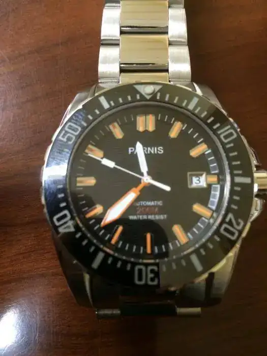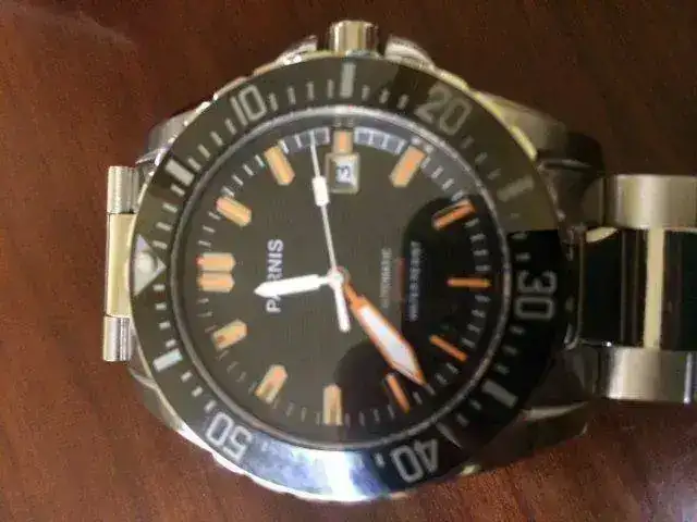 fruto de la conjunta parnisera de HdR,( gracias al staff de parnis europe), os presento este parnis, con denominacion interna PA6007, mas conocido como 200M ceramic bezel sapphire glass, por los catalogos de venta, el reloj se inspira en un doxa, pero en este caso solo es una inspiracion en el dial, y tampoco exacta, el resto es muy diferente, con lo que este modelo no lo calificaria como de "fusilamiento" de otro ya conocido, dejando solo en una leve inspiracion, lo que lo hace muy interesante en el catalogo de parnis, ademas de sus buenas especificaciones.