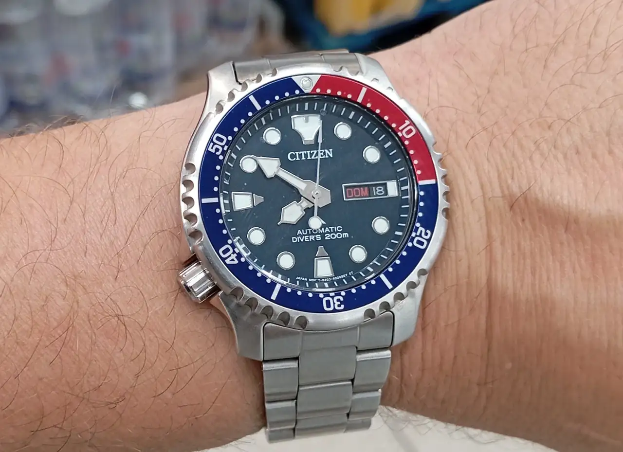 Es difícil -por no decir imposible- encontrar mejores relojes sumergibles que estos Citizen. Es increíble lo que ofrecen por el precio que tienen. Y además son muy bonitos. Este tuyo y el NY0084-89e, con el inserto de bisel verde, me encantan.Una foto de agosto estando de vacaciones,una semana de playa intensa y piscina y sin problema.
