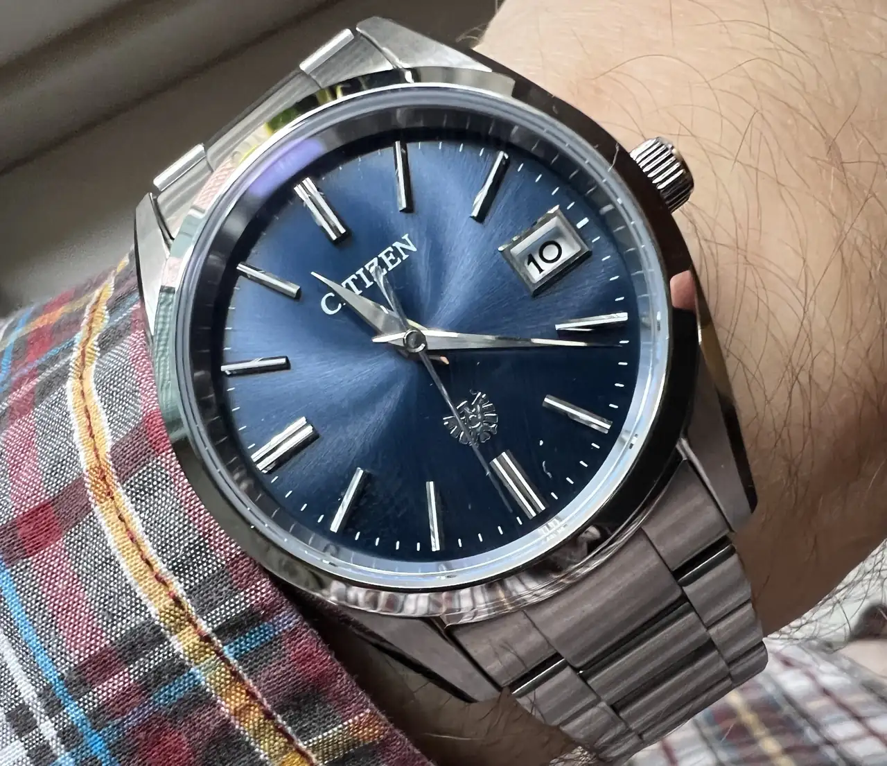 Muy bonito, original y funcional.Citizen Sapphire 8210. Llevo dos días con él puesto, me encanta este reloj y llevaba un tiempo sin ponérmelo. Tiene eso de Citizen que hace los relojes diferentes, es una marca con mucha personalidad y sello propio. Este tiene unas formas que no tiene ningún otro reloj de mi colección, y unos cepillados y pulidos muy bonitos. Lleva su eterno movimiento automático de manufactura, tan fiable y en este caso con el acabado dorado que lo hace más vistoso, y además cristal de zafiro, armis macizo comodísimo y elegante, y un buen lumen que dura toda la noche a pesar de sus 20 años. En todo esto viene a ser como el Tsuyosa, o mejor al revés, que este mío es de 2004. Y hace 20 años no se ponían zafiros tan fácilmente como ahora, pero este Citizen ya lo tenía siendo un reloj económico. Gran marca siempre. Entre las buenas manufacturas de calidad con historia, pocos hacen relojes tan buenos con los mismos precios, y además con diseños chulos.