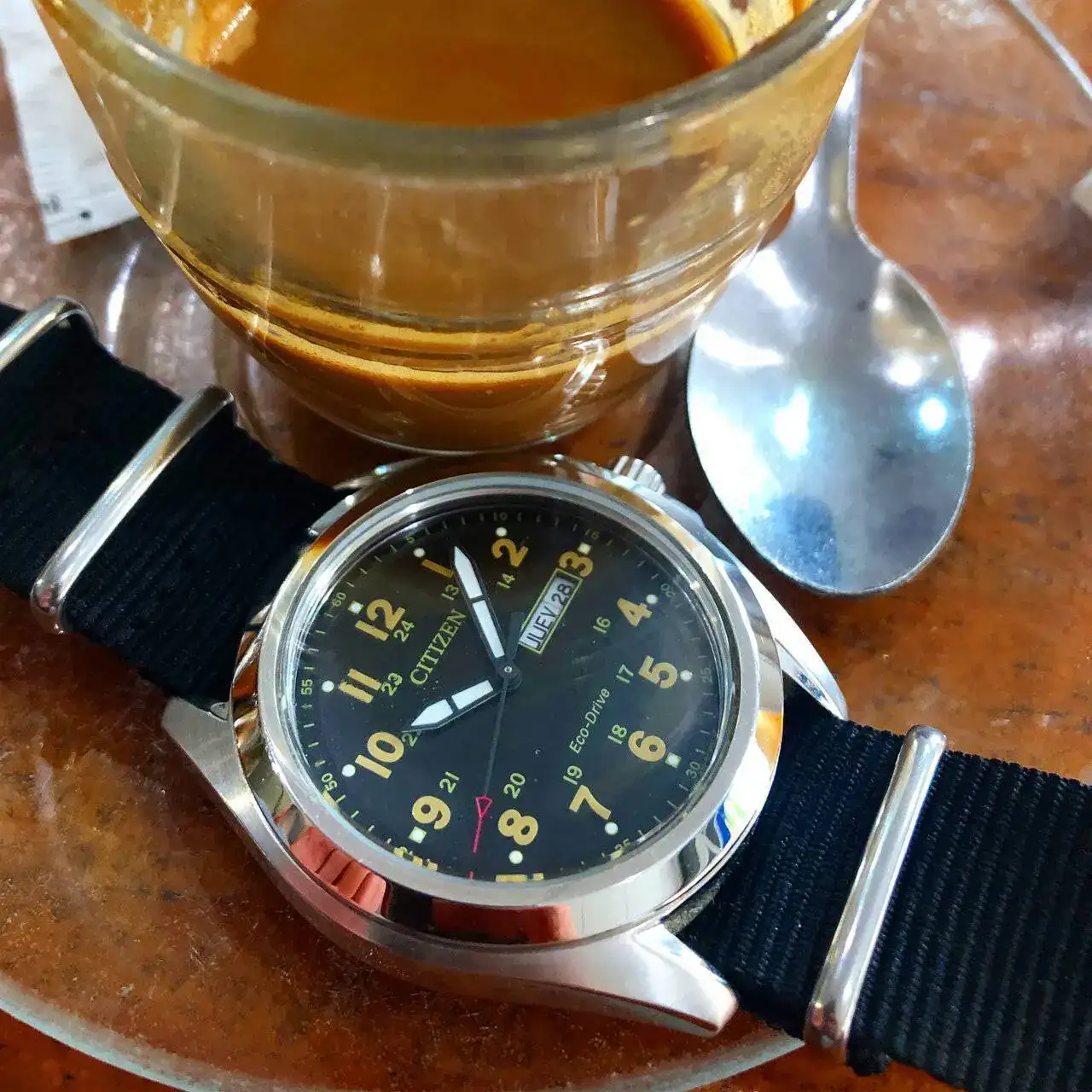 Cada día me gusta más Citizen, y os diré que cada vez me gustan más los cuarzos: me empiezan a parecer más vintage que los automàticos (¡anatema!). Tengo tres Citizen, pero este Endicott, el que llevo hoy, es el que más me gusta. El siguiente será el 831 verde, ya veremos cuándo...