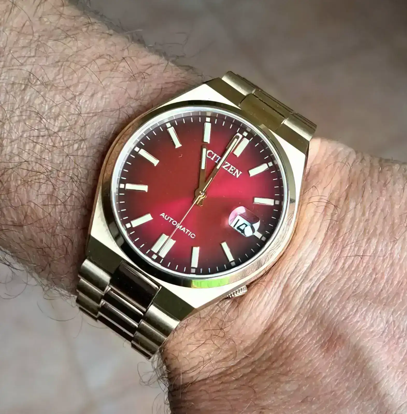 SIempre quise un rojo sangre con cierta elegancia, y este Tsuyosa me dejó plenamente satisfecho cuando me hice con él... Al probarlo un par de veces, entendí porqué este modelo de Citizen se ha vuelto tan popular... Ahora me dicidí ir a por el hermanl pequeño con un dial más veraniego para hacerle compañía...